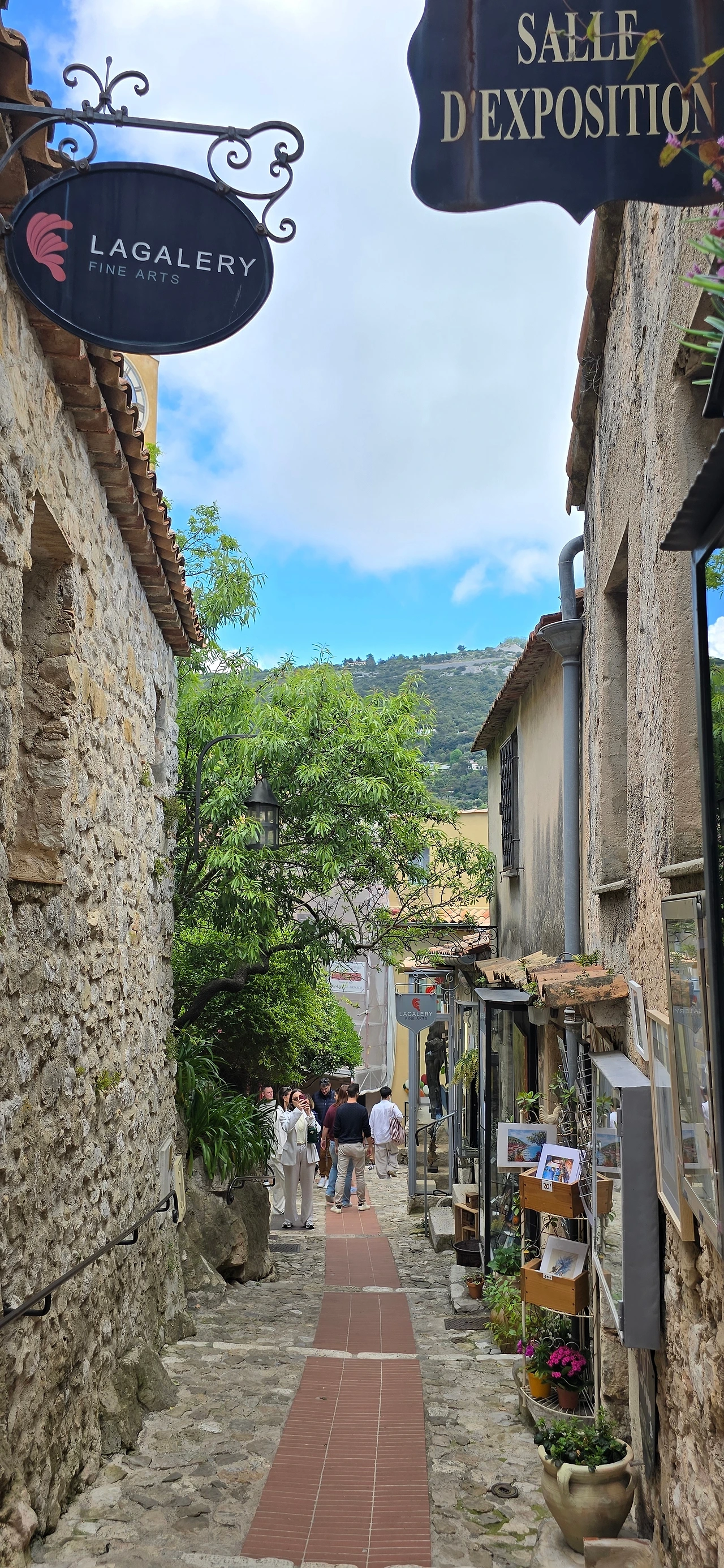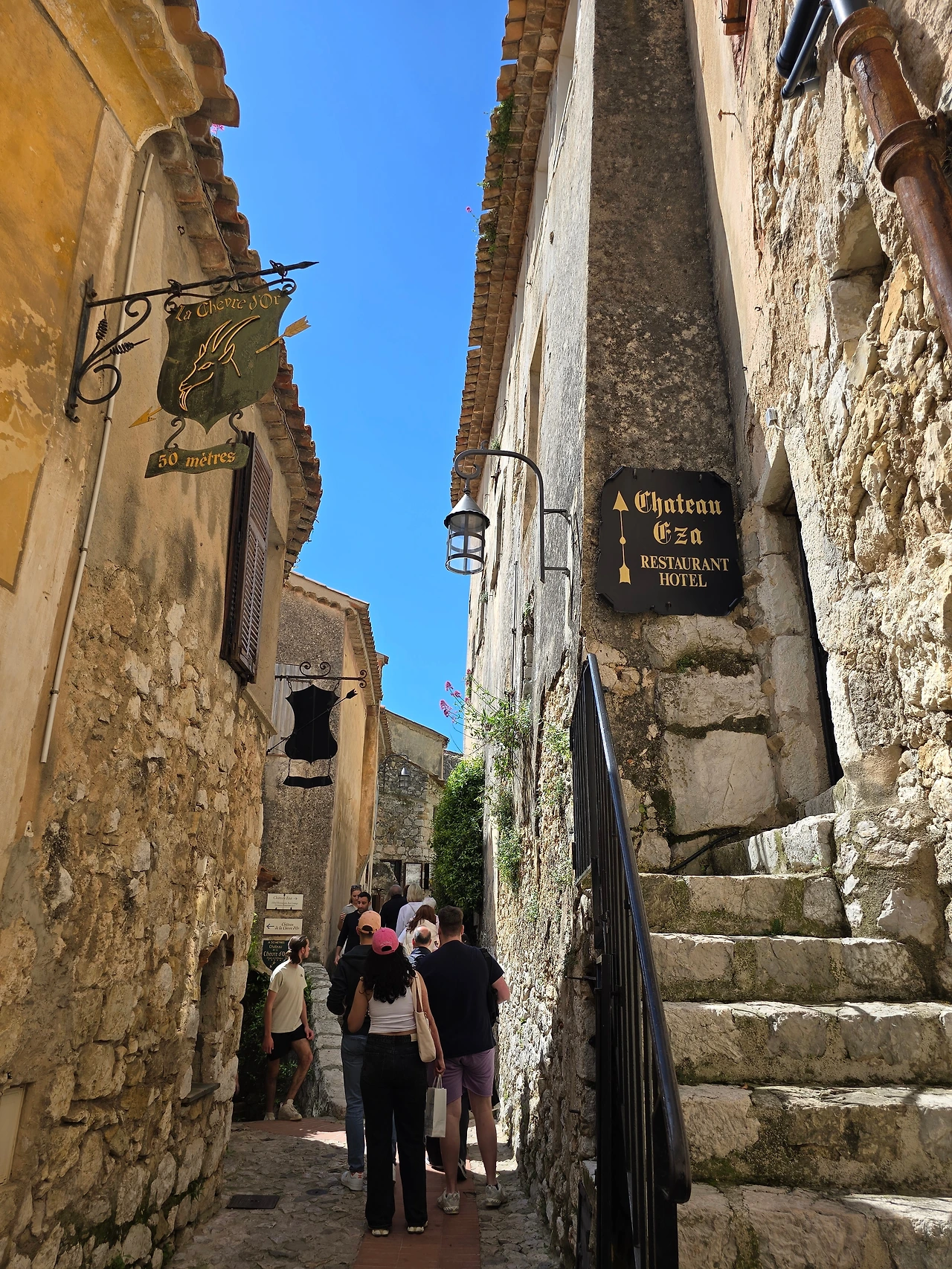 에즈 빌리지는 봉우리로 우뚝 솟은 지형에 형성된 마을로 여러 갈래의 골목들에 많은 상가들이 주택과 함께 형성되어 있었다. 상가들은 그림 취급하는 갤러리, 옷, 가방, 모자, 인형, 라벤더 향수, 비누 가게 등의 지중해를 닮은 화려하고 경쾌한 제품들과 예쁘고 독특한 디자인의 간판들이 석축으로 이루어진 고풍스러운 건물들과 어우러져 골목 가득 감성 어린 분위기를 자아내고 있었다.