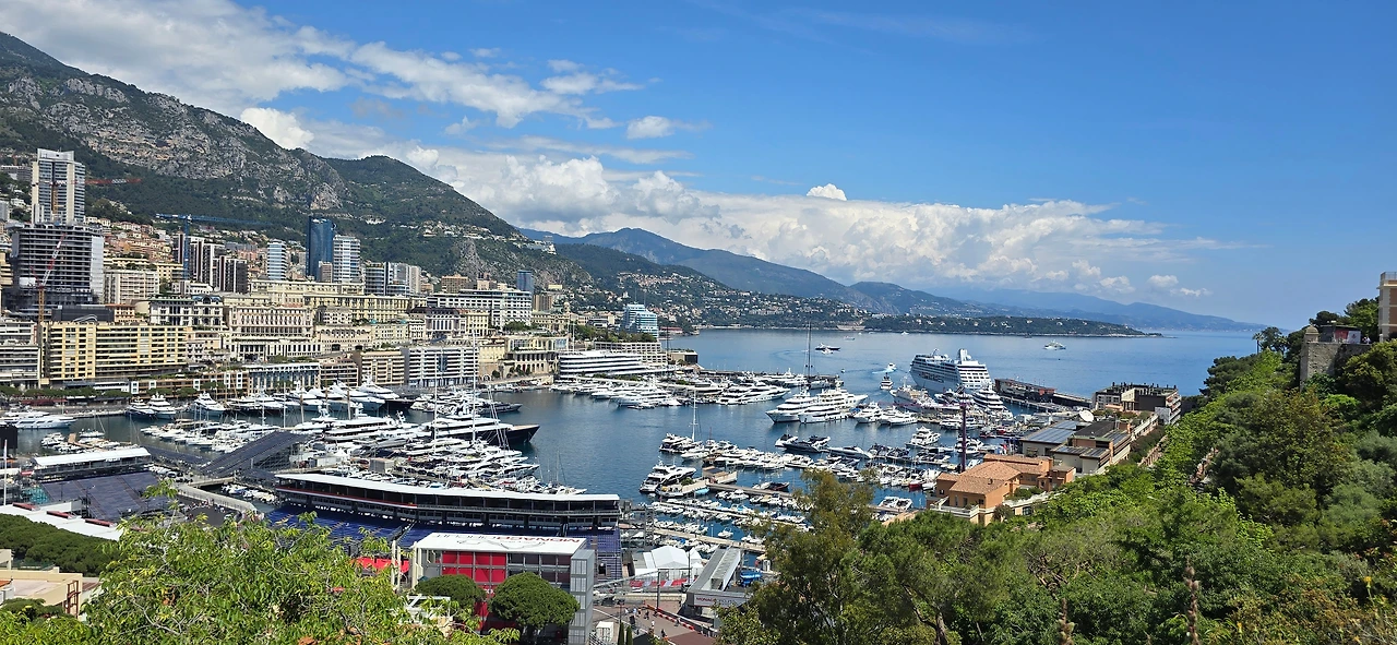 이제 모나코로 향한다. 모나코는 분위기가 어떤지 정도만 궁금하여 차로 한 바퀴 둘러보기만 하고 나올 생각이다. 주요 관광지인 몬테카를로, 왕궁, 대성당 등 은 크게 관심이 없는 데다 여행사가 모레 에즈 빌리지와 모나코를 투어 코스로 넣고 있어서 그때 함께 들러 볼 생각이다. 모나코 진입하는 길이 좁고 험하다고 하여 신경이 많이 쓰였으나 크게 힘들지 않았고, 해안의 좁은 지역에 빽빽하게 입지 한 건물 사이를 주행하면서 마치 홍콩의 어느 한 지역을 지나가는 듯한 느낌이 들었다. 카지노로 유명한 몬테카를로 앞을 지나가는데, 한낮에 가서인지 푸른 야자수 나무에 둘러싸여 한가롭다. 요트들이 정박된 항구를 지나 서서히 언덕길을 올라온다. 해안가에 예쁘게 호를 그리며 형성되어 있는 모나코를 천천히 감상하면서 빠져나온다.