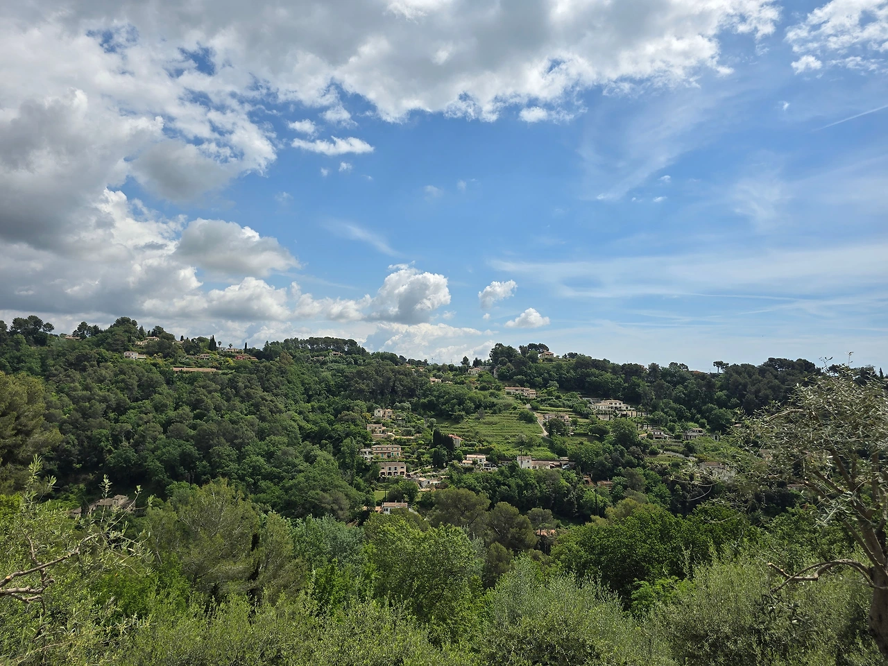 지중해 드라이브 코스는 푸르고 고요한 지중해를 옆으로 나란히 동무하여 차창으로 넘실대며 들어오는 상쾌한 공기 들이키며 니스에서 에즈 빌리지, 모나코, 앙티브, 코트다쥐르 지방의 자연을 최대한 누리고자 한껏 천천히 차량을 몰아 보았다. 그리고 니스에서 생폴 드방스, 앙티브로 가는 내륙 코스는 지중해 해안 드라이브와 쌍벽을 이루는 또 다른 행복을 주는 코스였다. 완만하거나 평평한 고원 지대를 따라 능소화 같은 주황색 지붕을 한 주택들이 군집을 이루며 초록의 숲에 둘러싸여 형성되어 있는 마을들은 일상생활이 이루어지는 공간이 어쩌면 그다지도 아름다운 풍경을 만들어 낼 수 있는지...