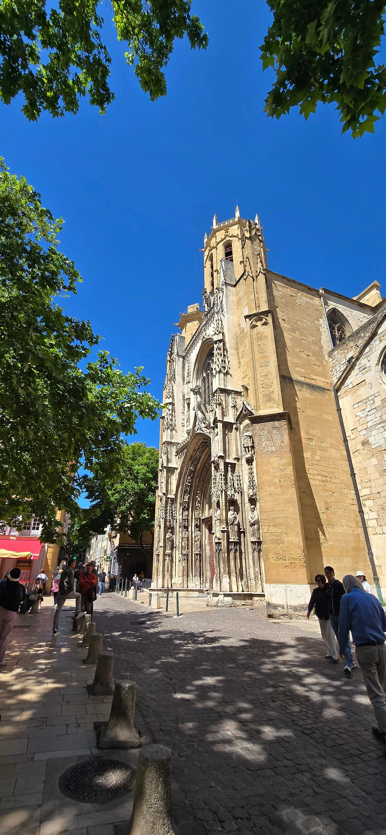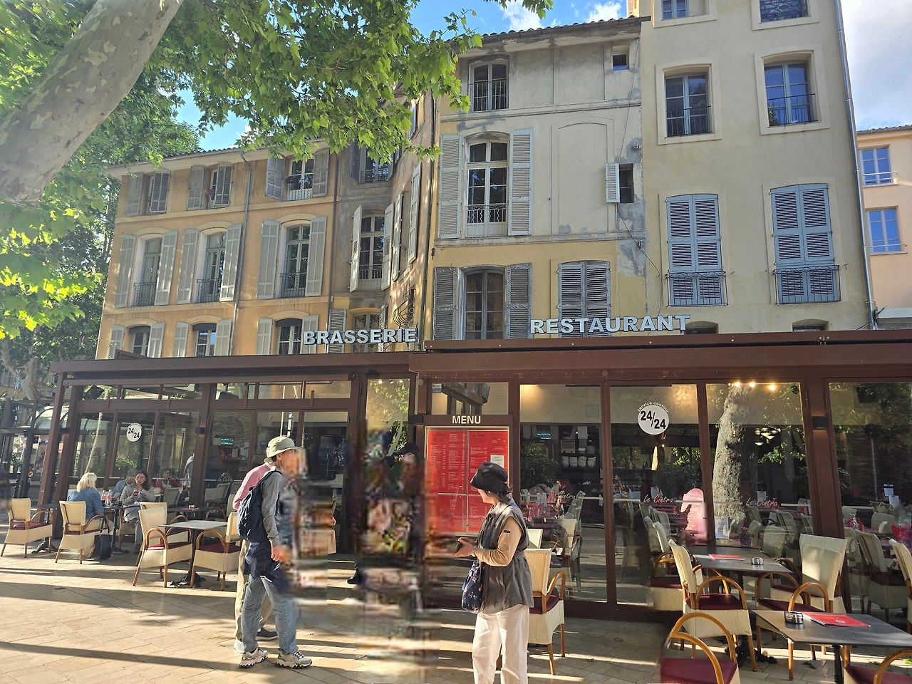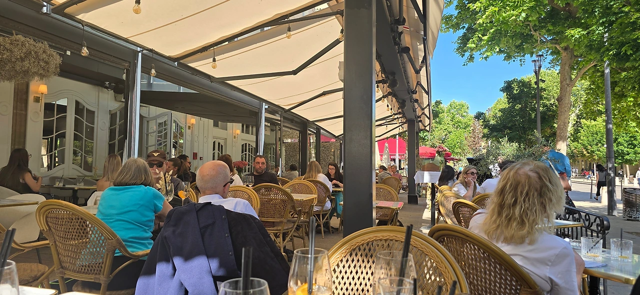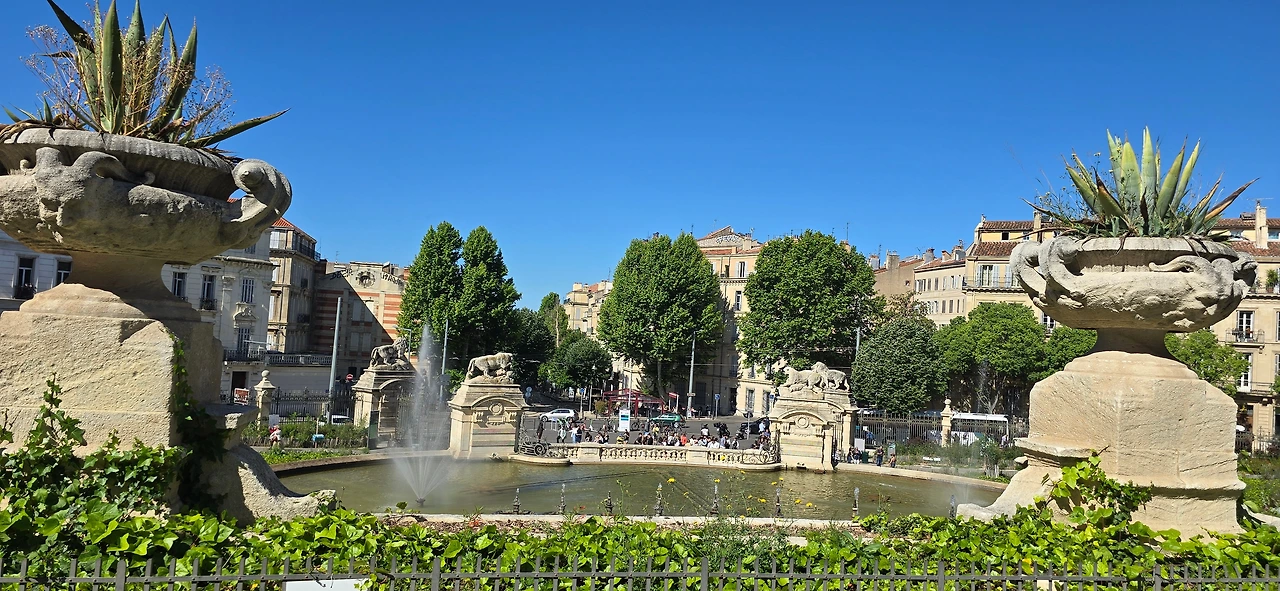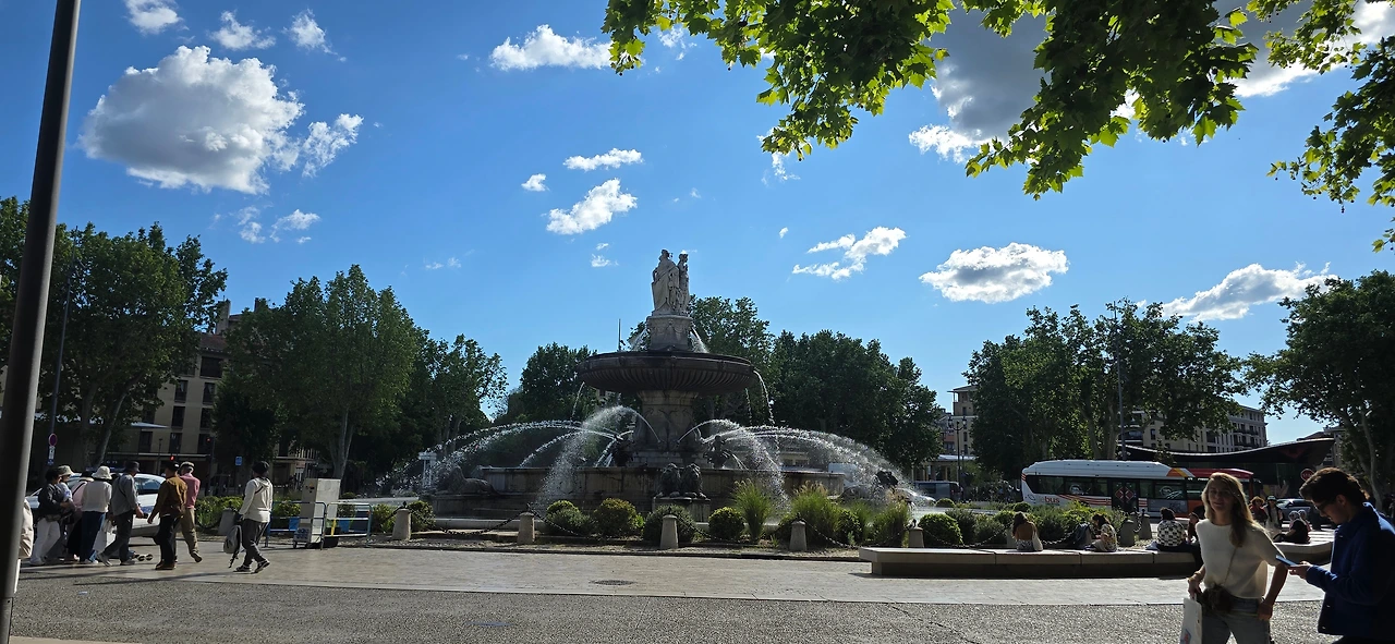 이어서 마르세이유에서 30km 정도 북쪽 내륙에 있는 액상프로방스로 갔다. 액상프로방스는 기대를 많이 한 곳이다. 좋아하는 화가 폴 세잔의 고향이기도 하고 그가 마지막을 보낸 곳이기도 하기 때문이다. 대체로 고흐, 모네, 르느와르, 세잔 등 인상파 화가들의 그림을 좋아한다. 고흐의 그림은 그의 고통스러운 삶이 안타깝도록 잘 반추되어서, 모네의 그림은 편안한 자연 풍경 때문에, 르느와르는 여유롭고 평화로운 분위기 때문에 좋아한다. 그리고 세잔의 그림은 특히 '생트빅투아르산'을 좋아하는데, 선명하고 청아한 색감과 간결하면서도 힘차고 생동감이 있어서 좋아한다. 그런 화풍 때문에 대체로 정물화를 좋아하지 않지만 사과를 주요 대상으로 그려낸 그의 정물화는 좋아한다. 그래서 당연히 폴 세잔과 관련된 곳, 이를테면 세잔의 아뜰리에를 포함한 화가들의 언덕, 세잔의 길, 세잔의 무덤, 그라네 미술관 등의 방문을 기대하였고, 방문하리라 생각했었다. 그러나 모두 방문하지를 못했다. 마르세이유에서 오전 일정을 마치고 온 후인 데다 여행사에서 단체로 구시가지와 생소뵈르 대성당 그리고 미라보 거리 등의 안내 후 주어진 자유 시간이 너무 짧았다. 그래도 한번 마음 내 보려고 쳐다보았던 화가들의 언덕은 따가운 햇살과 경사진 언덕으로 마음을 접어야만 했다. 그래서 광주 자매들과 미라보 거리의 상가와 카페들을 좀 더 구경하고 한 노천카페에 들러 여행의 기분 한껏 올려주는 알코올 약간 가미된 오렌지 빛 음료에 알딸딸해져 파란 하늘 솜구름만큼이나 부풀고 나른한 시간을 보내었다. 로마시대부터 온천이 많기로 유명한 물의 도시답게 분수대가 곳곳에 있어서 햇볕 따가운 날에 온 시가지에 시원하게 뿜어지는 분수를 상상만 해도 시원한 느낌이 들었다. 마라보 거리에 있는 식당에서 저녁 식사를 하였다.