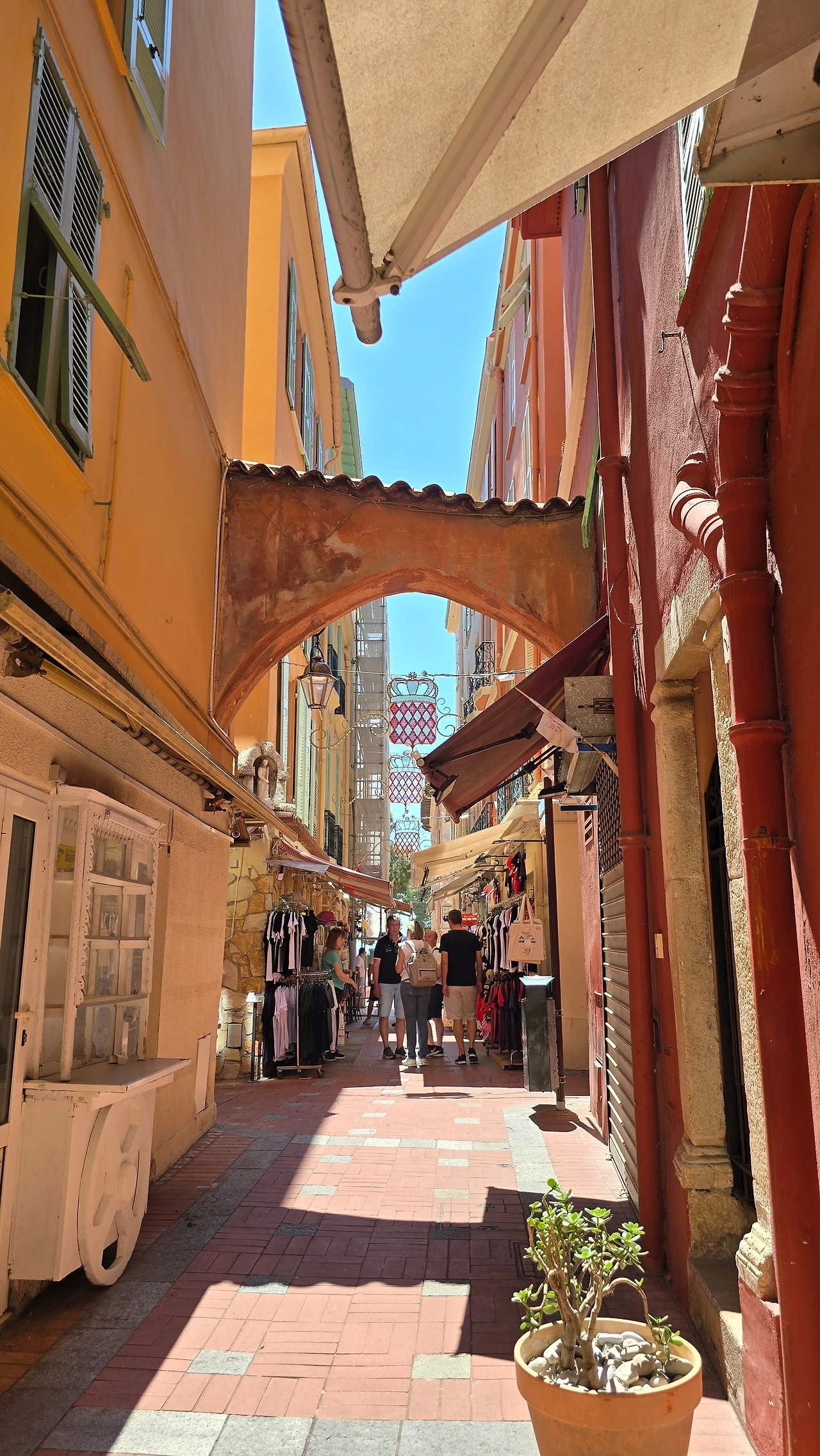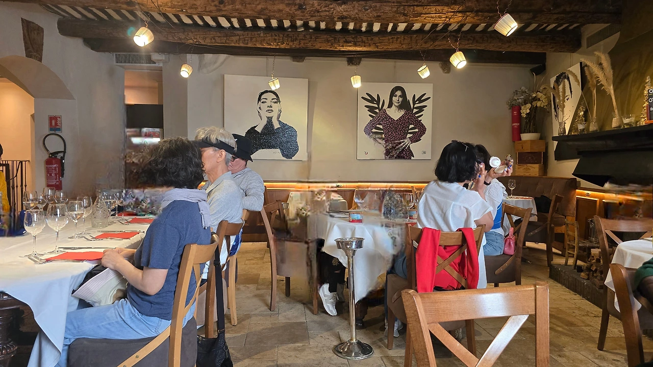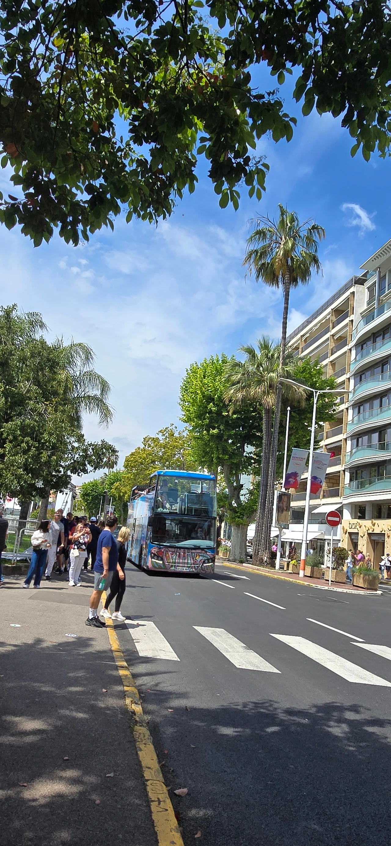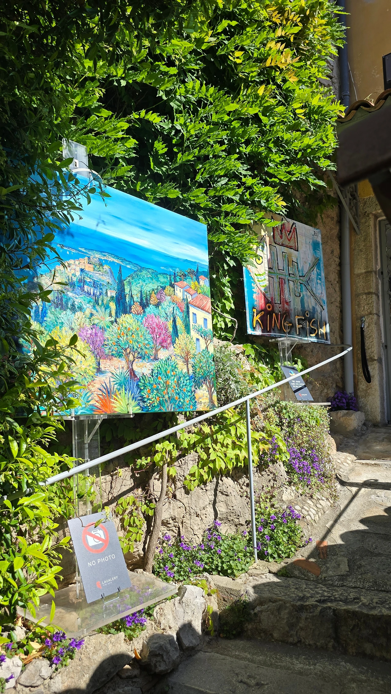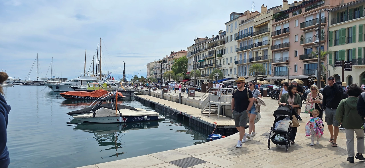 이곳을 떠나 서쪽에 위치한 세계 3대 영화제 축제 공간 중 하나인 칸느로 갔다. 칸느는 니스와 마찬가지로 항구에 위치한 코트다쥐르 지역 중의 한 도시이다. 영화제가 열리는 팔레 데 페스티벌은 이틀 후인 13일부터 개최하는 영화제를 위해 레드 카펫으로 유명한 계단 주변을 울타리를 쳐두고 시설 정비에 들어가 있었다. 따라서 계단 옆에서 인증숏은 찍을 수가 없었고, 건물 내에 있는 굿즈샵에 들어가서 구경하고 나와서, 이름하여 '명예의 거리'라 일컬어지는 건물 주변에서 바닥에 찍혀 있는 스타들의 핸드페인팅을 마국 LA에서 처럼 좋아하는 연예인의 것을 찾아보기도 하였다. 해안을 따라 산책을 하고 있자니 도로 건너편에 도로를 따라 나란히 형성된 명품 브랜드 스토어가 거리(크로아제트가)를 환하게 밝히고 있는 것도 보였다. 중앙광장 앞 도로변을 따라 레스토랑, 카페들이 즐비한 가운데 안쪽의 골목으로 들어가니 역시 레스토랑, 카페, 기념품 가게, 의류점 등 상가들이 경사진 골목을 따라 양옆으로 길게 형성되어 있었다. 점심 식사로 예약되어 있는 식당도 마침 그곳에 위치해 있어서 오가는 길에 눈요기도 하고, 여름에 가볍게 들고 다닐 요량으로 에코백 구매도 하는 솔솔 한 재미가 있었다.