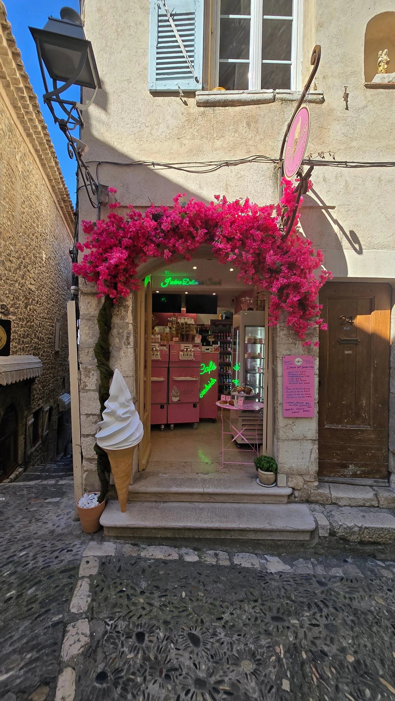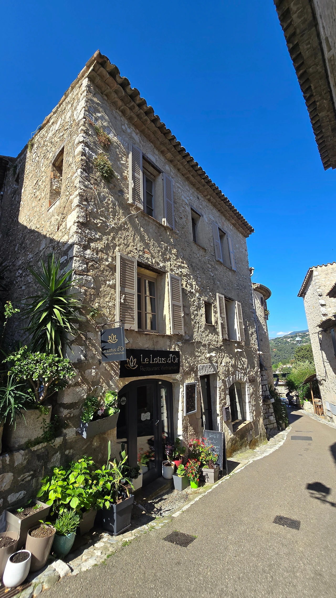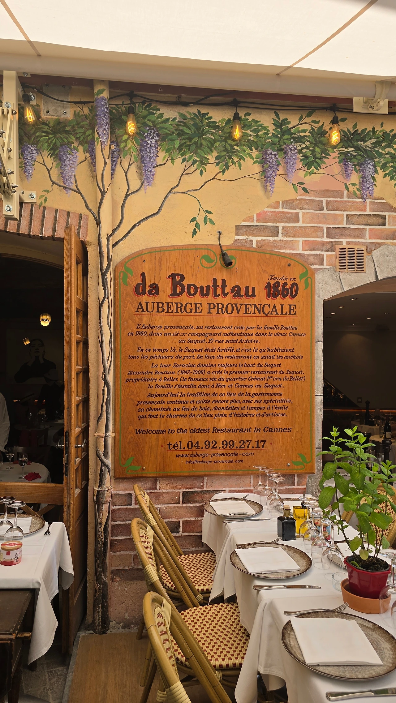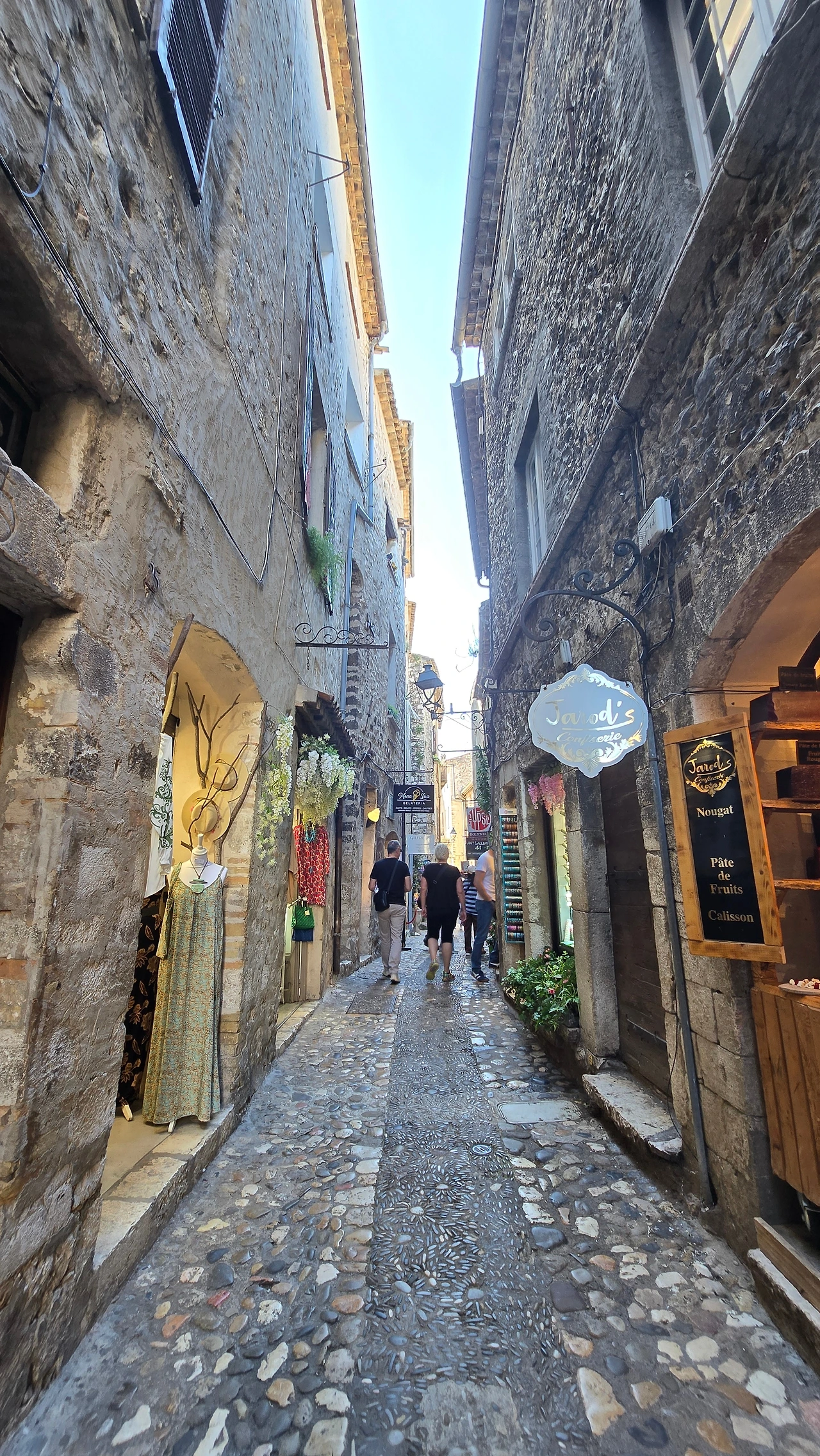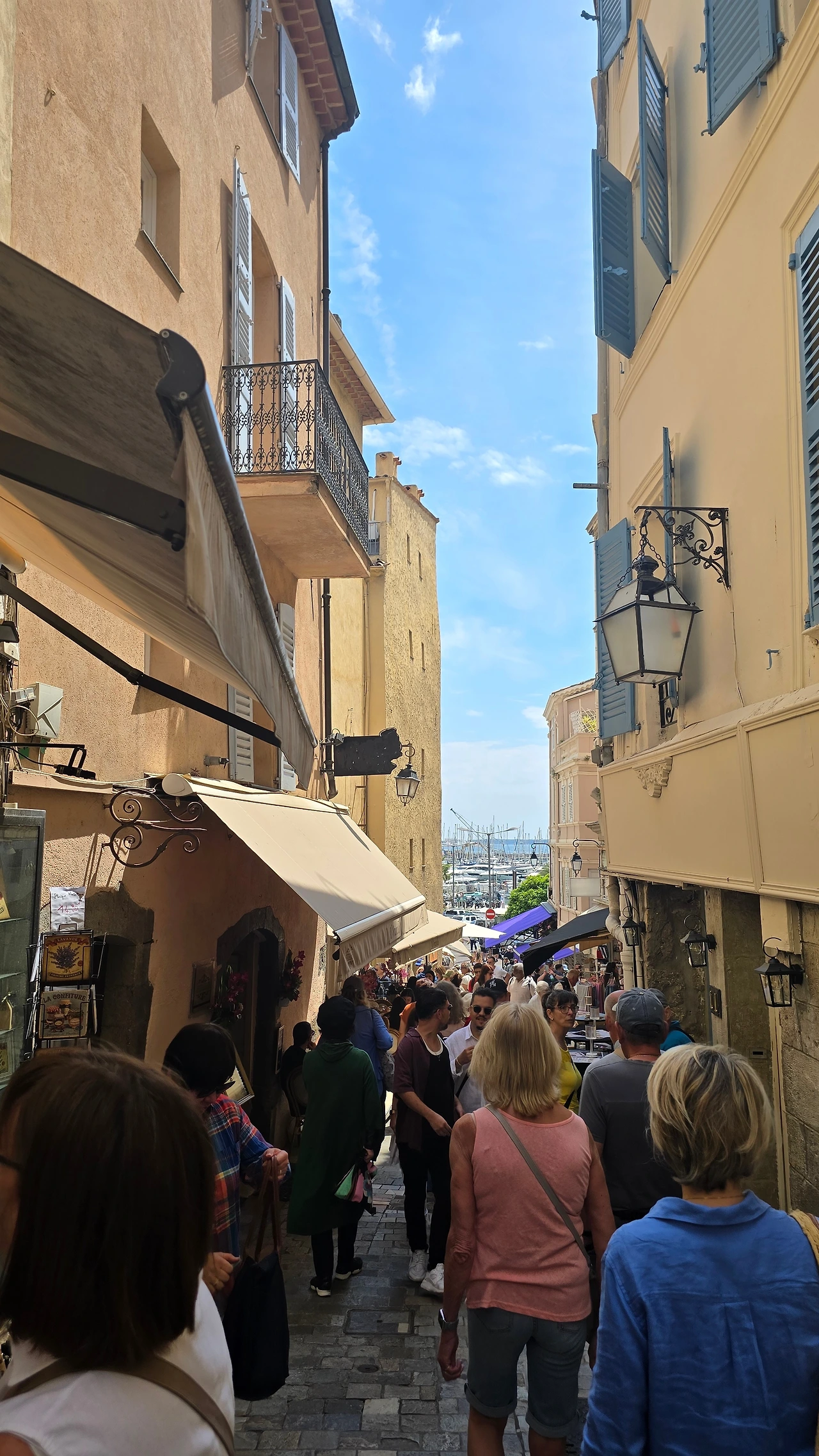 이곳을 떠나 서쪽에 위치한 세계 3대 영화제 축제 공간 중 하나인 칸느로 갔다. 칸느는 니스와 마찬가지로 항구에 위치한 코트다쥐르 지역 중의 한 도시이다. 영화제가 열리는 팔레 데 페스티벌은 이틀 후인 13일부터 개최하는 영화제를 위해 레드 카펫으로 유명한 계단 주변을 울타리를 쳐두고 시설 정비에 들어가 있었다. 따라서 계단 옆에서 인증숏은 찍을 수가 없었고, 건물 내에 있는 굿즈샵에 들어가서 구경하고 나와서, 이름하여 '명예의 거리'라 일컬어지는 건물 주변에서 바닥에 찍혀 있는 스타들의 핸드페인팅을 마국 LA에서 처럼 좋아하는 연예인의 것을 찾아보기도 하였다. 해안을 따라 산책을 하고 있자니 도로 건너편에 도로를 따라 나란히 형성된 명품 브랜드 스토어가 거리(크로아제트가)를 환하게 밝히고 있는 것도 보였다. 중앙광장 앞 도로변을 따라 레스토랑, 카페들이 즐비한 가운데 안쪽의 골목으로 들어가니 역시 레스토랑, 카페, 기념품 가게, 의류점 등 상가들이 경사진 골목을 따라 양옆으로 길게 형성되어 있었다. 점심 식사로 예약되어 있는 식당도 마침 그곳에 위치해 있어서 오가는 길에 눈요기도 하고, 여름에 가볍게 들고 다닐 요량으로 에코백 구매도 하는 솔솔 한 재미가 있었다.