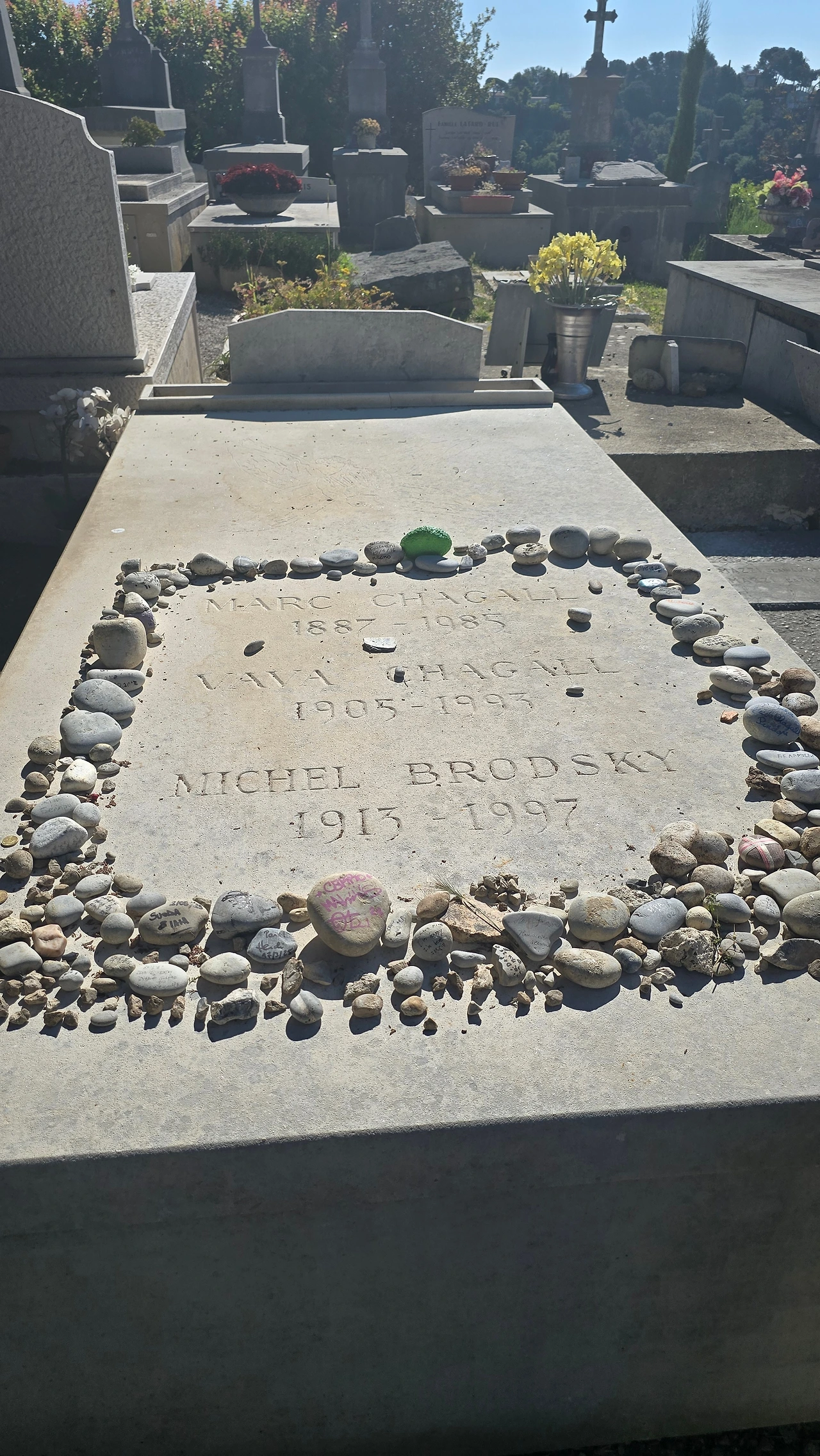 다음 날인 5월 11일엔 이틀 연박한 호텔을 떠나 중세 요새 도시인 생폴드방스로 향하였다. 이곳도 이미 어제 홀로 다녀갔던 곳이지만 예쁜 지역이니 또 들르는 것도 좋았고, 가이드의 설명으로 몰랐던 내용도 알게 되어 좋았다. 어제는 들르지 않았던 샤갈의 묘지를 방문하였다. 샤갈이 이곳에서 두 번째 부인과 노년을 보내다 98세인 1985년에 생을 마감하였는데, 당시로선 장수한 삶이라고 볼 수 있다.