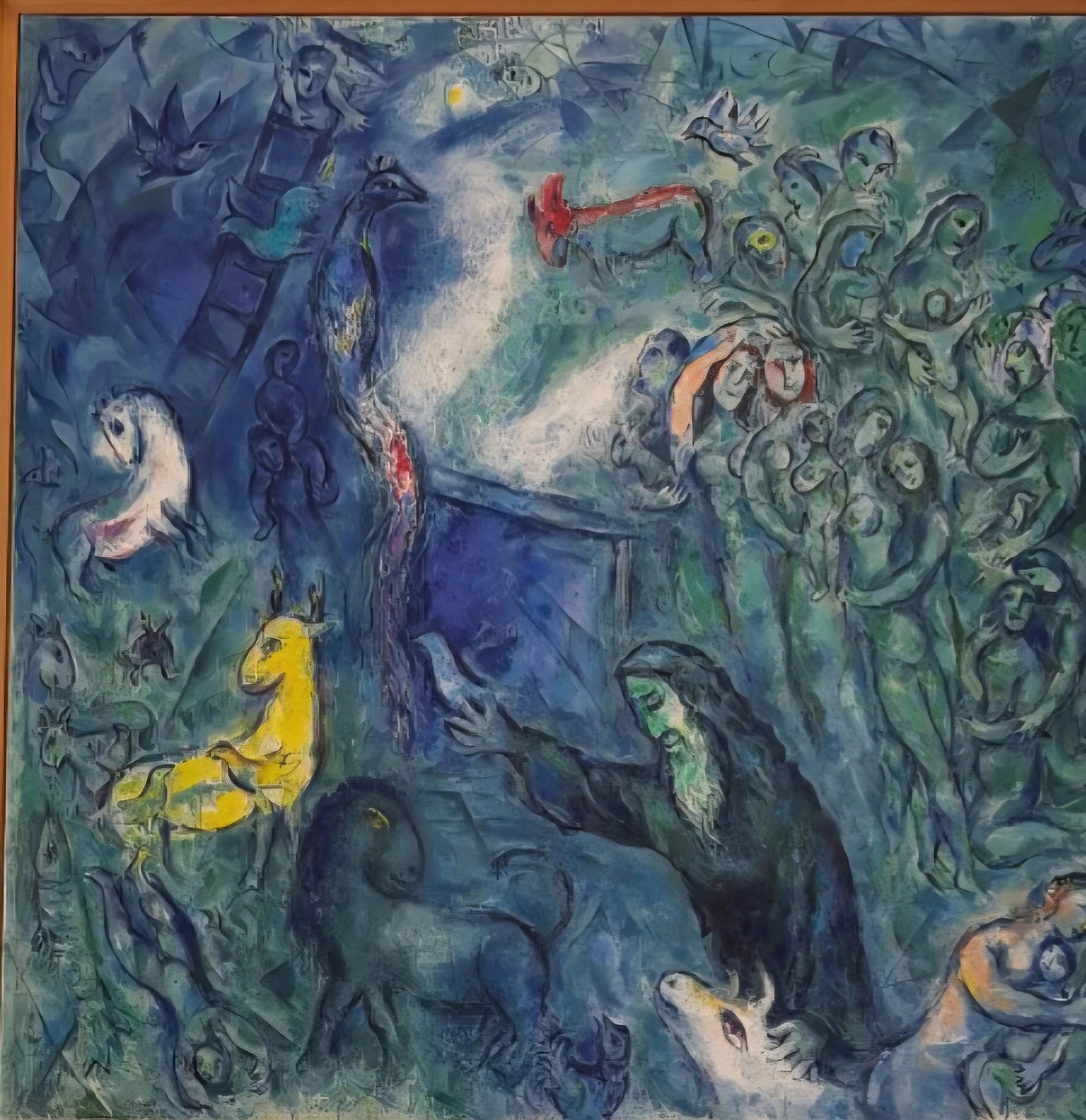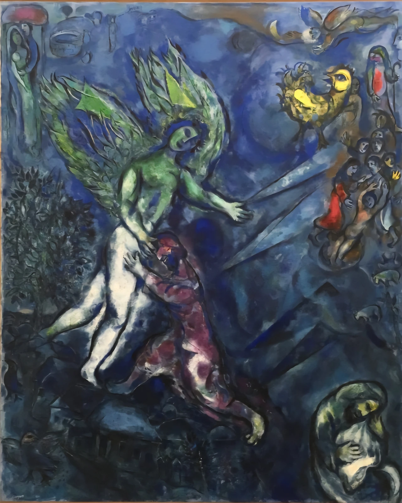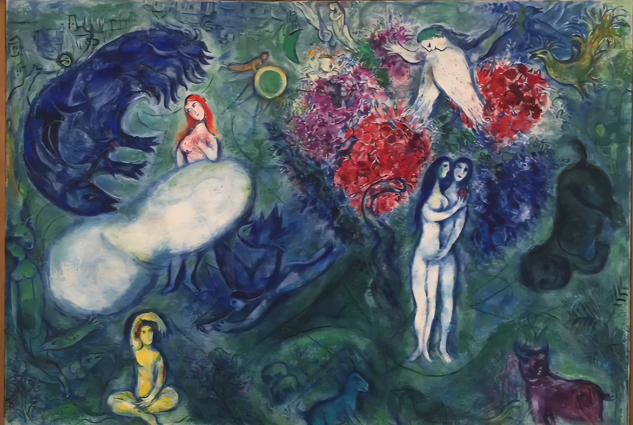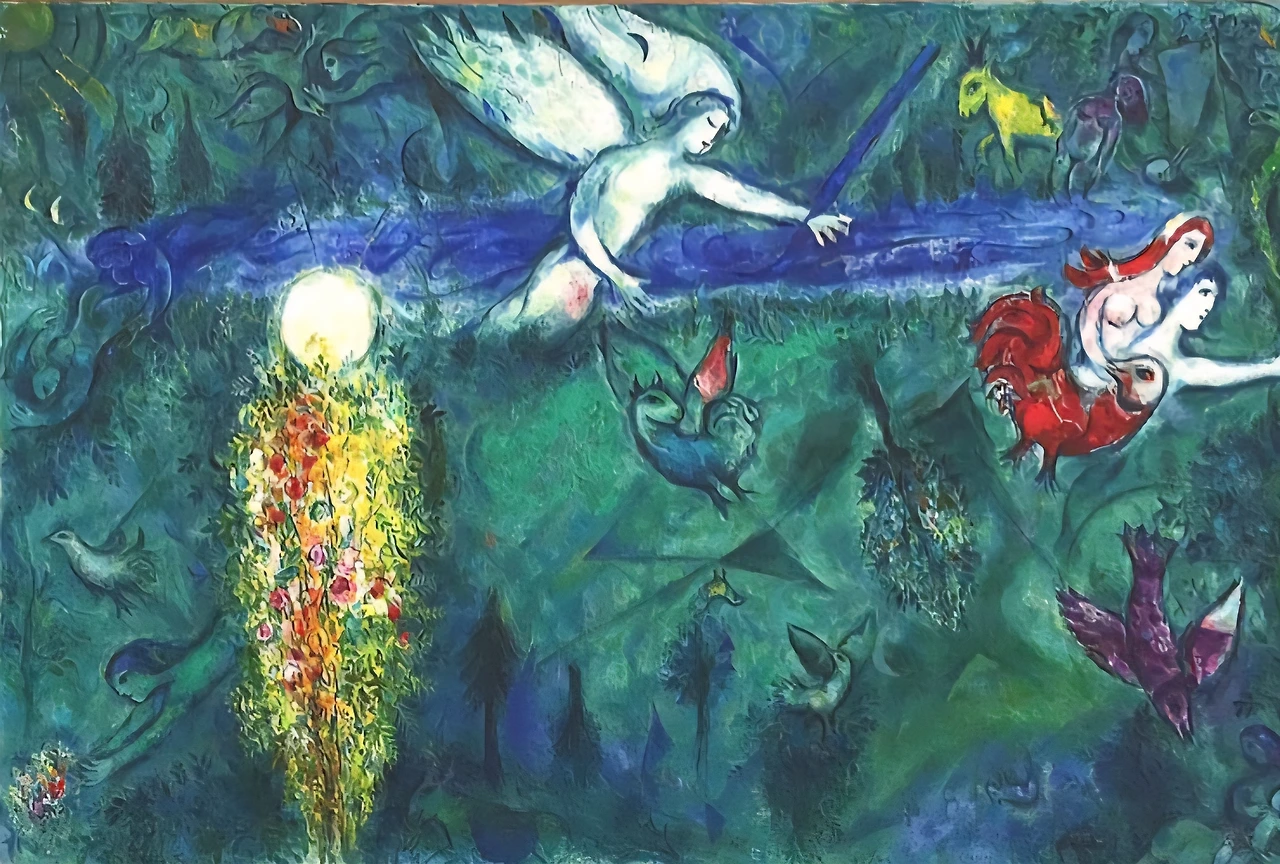 유대계 출신으로서 나라 없는 민족의 설움과 시련을 겪으면서도 장수한 비결은 무엇일까. 평생을 그리워했다는 고향 비테프스크에 대한 행복한 기억이 풍성해서였을까. 부모님과 친지들과 동네 사람들이 한데 어울려 만들어 내는 유대계 사회의 기독교와 음악, 춤과 의복과 관혼상제와 여러 관습과 그런 행위가 이루어졌던 공간의 지형지물 등, 어린 시절 머리와 가슴에 새겨진 이미지는 웬만하면 오래 기억된다. 그 기억 속에 행복한 기운이 많다면 아마도 그 추억을 화폭에 담는 매 순간들이 행복으로 충만할 것이다.