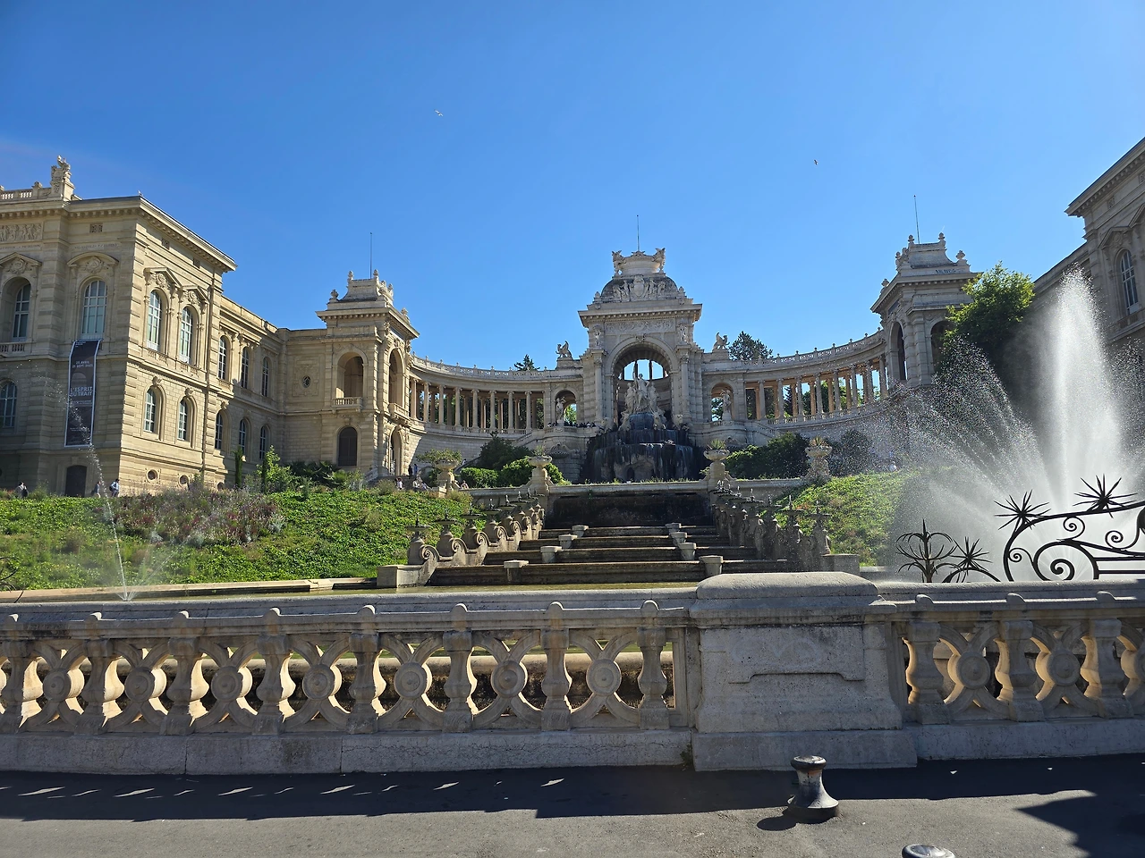 그리고 다음으로 다녀간 19세기 건축물인 롱샹 궁전은 다소 어수선하고 번잡한 시가지에서 뜻밖의 보석 같은 모습으로 빛나고 있었다. 로마 시내에서나 있을 법한 고풍스러운 분수대에서 뿜어져 솟구치는 시원한 물줄기와 반원형 건축 구조가 나무와 꽃들과 어우러져 즐거움과 기쁨을 주기에 완벽하였다. 너무 예뻐서 여러 각도에서 사진 찍기에 분주했다.