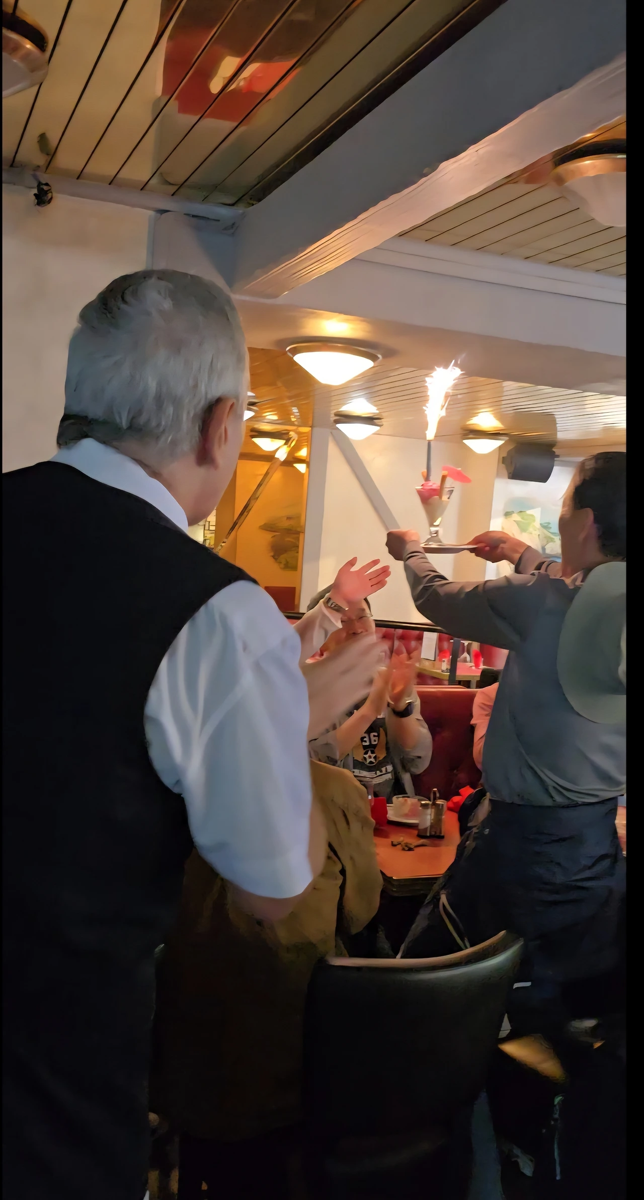부부 12명 일행 중 한 남성분이 마침 생일이어서, 식당에서 축하의 의미로 예쁘게 장식한 칵테일 잔에 불꽃 뜨겁게 피어오르는 귀여운 축포를 꽂아 축하해 주었다. 실내는 생일 축하 노래로 한껏 분위기가 달아올랐다. 흥겨운 분위기 놓칠세라 바쁘게 동영상으로 촬영하여 생일 당사자분께 선물로 드렸더니 무척이나 기뻐하였다.