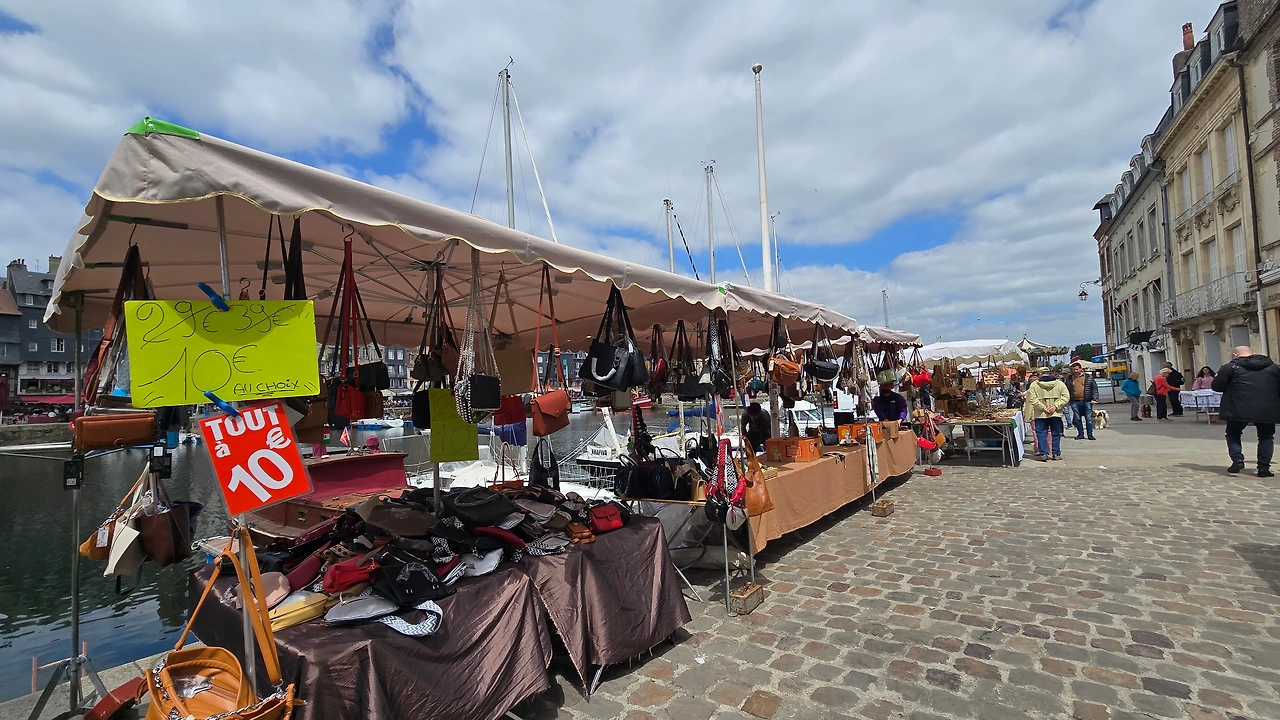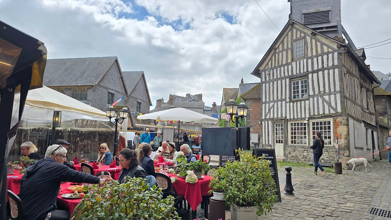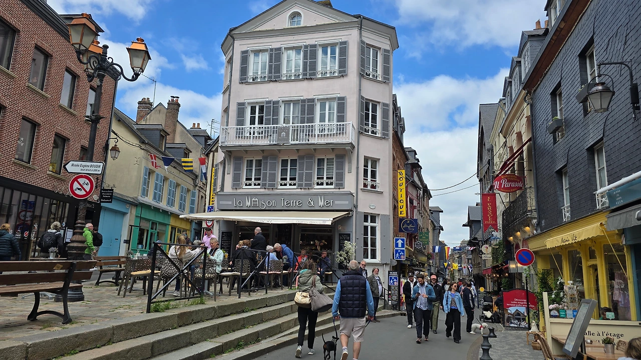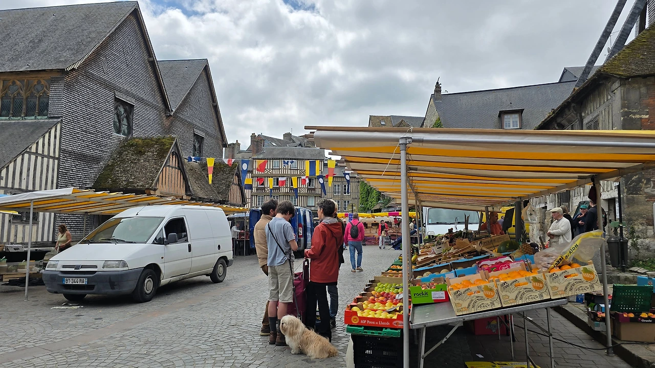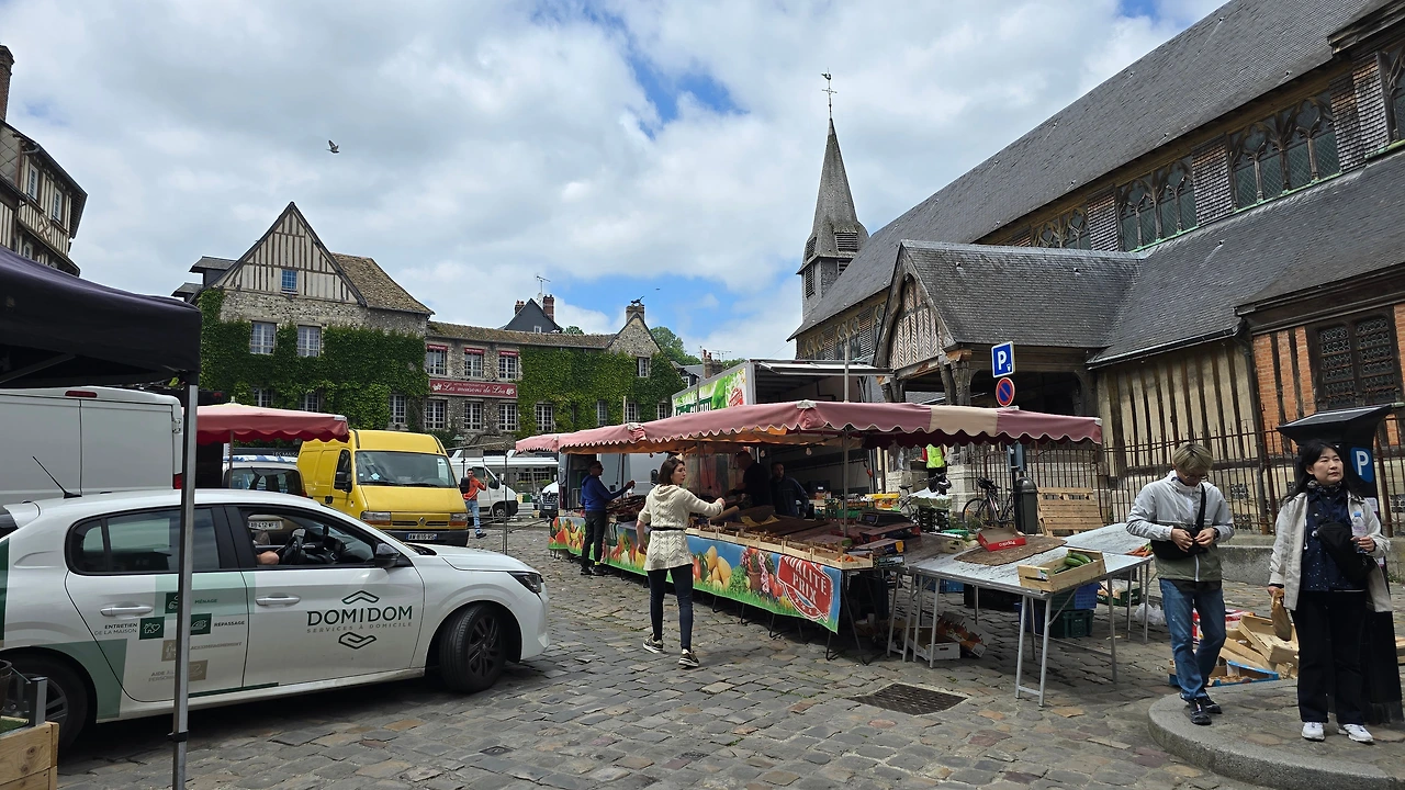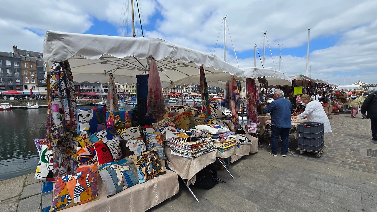 건너편 동네인 생트아드레스가 고향인 모네와 그 모네에게 야외에서 그리는 풍경화법을 인도한 스승이자 친구인 외젠 부댕의 고향 영향인지 1층 상가엔 예쁜 그림을 전시한 갤러리들이 의외로 많아 좁은 골목의 분위기를 밝게 돋우고 있다. 이외에도 빵, 디저트, 아이스크림, 치즈, 와인, 장식품, 의류 등 다양한 상품들을 판매하고 있다. 좀 더 안으로 들어가니 선착장에서 본 장터보다 더 활기차게 장날 분위기가 형성되어 있다.