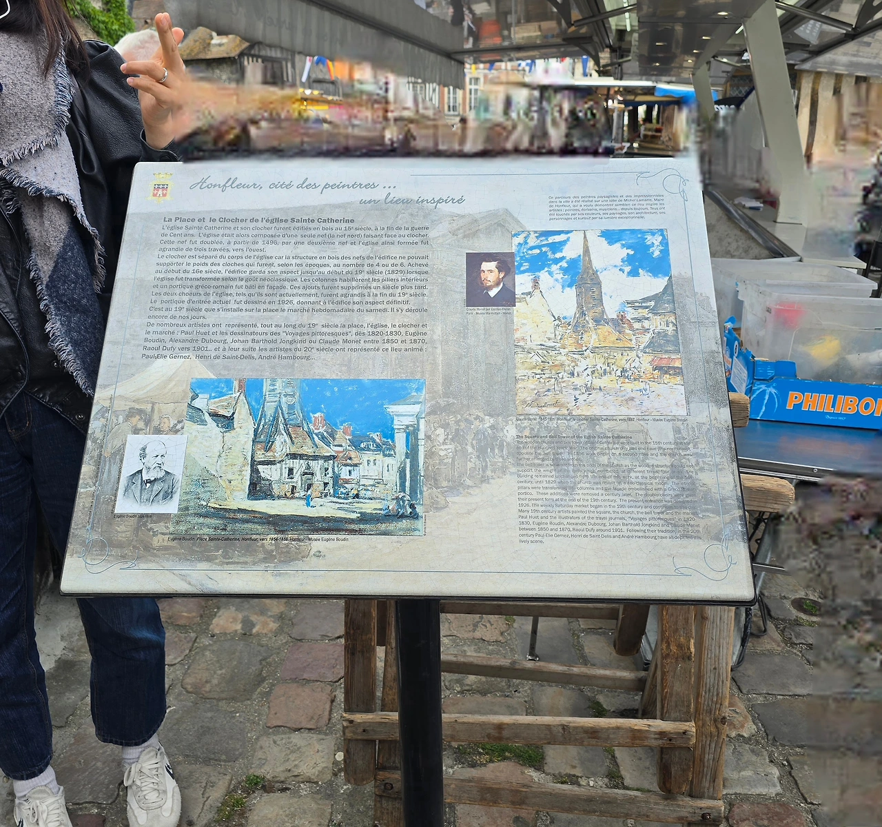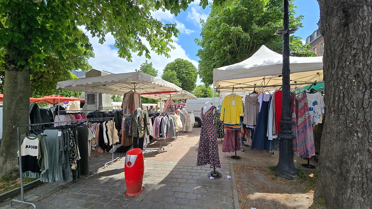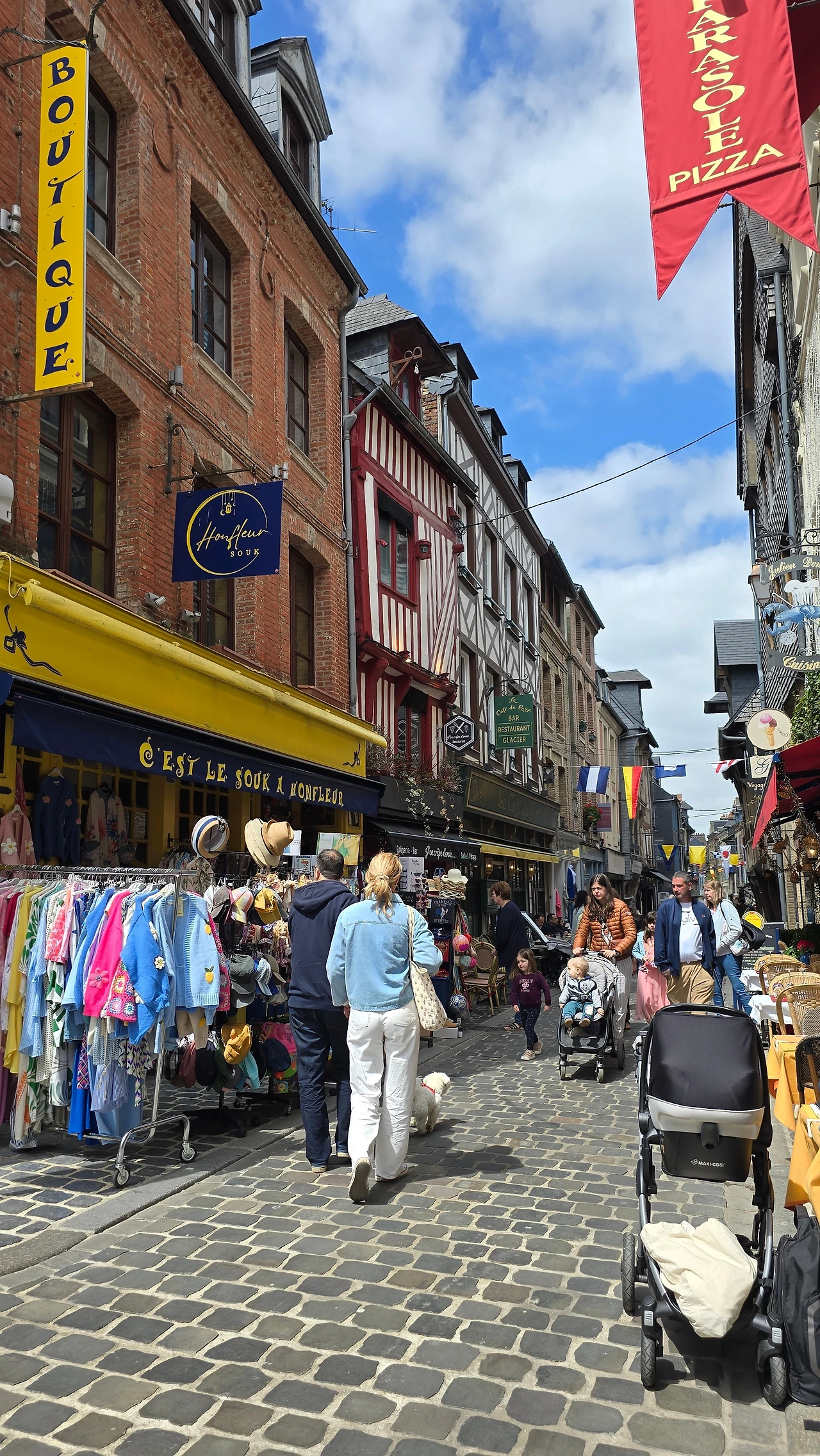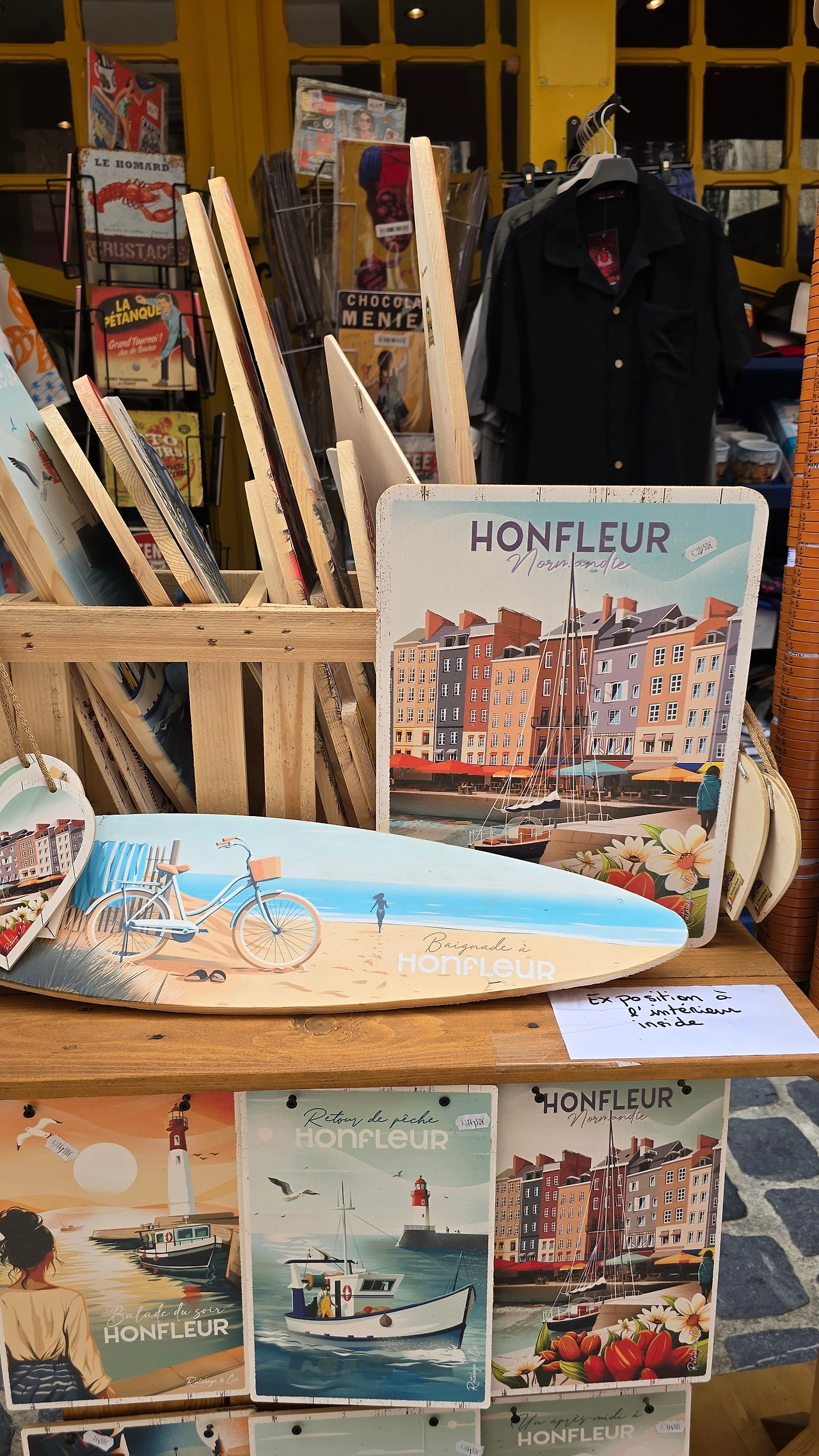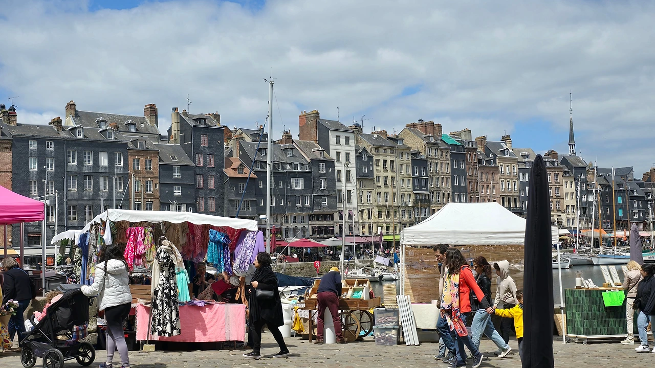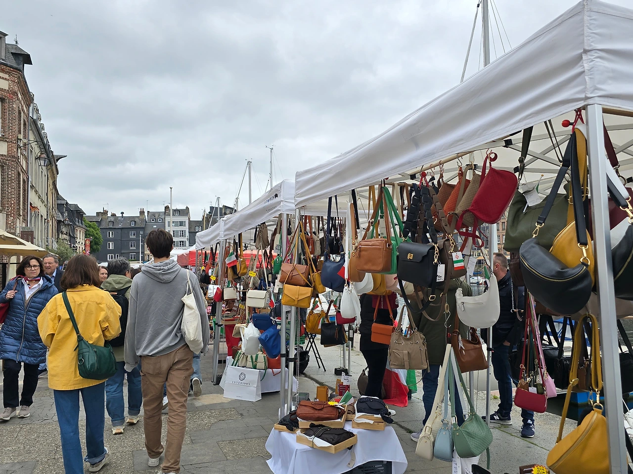 건너편 동네인 생트아드레스가 고향인 모네와 그 모네에게 야외에서 그리는 풍경화법을 인도한 스승이자 친구인 외젠 부댕의 고향 영향인지 1층 상가엔 예쁜 그림을 전시한 갤러리들이 의외로 많아 좁은 골목의 분위기를 밝게 돋우고 있다. 이외에도 빵, 디저트, 아이스크림, 치즈, 와인, 장식품, 의류 등 다양한 상품들을 판매하고 있다. 좀 더 안으로 들어가니 선착장에서 본 장터보다 더 활기차게 장날 분위기가 형성되어 있다.