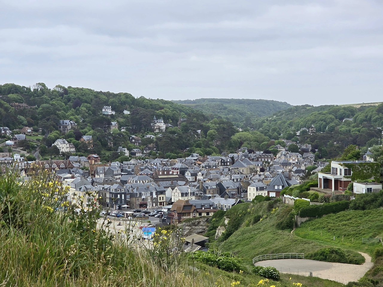 (에트르타 주차장과 주변 주택단지)