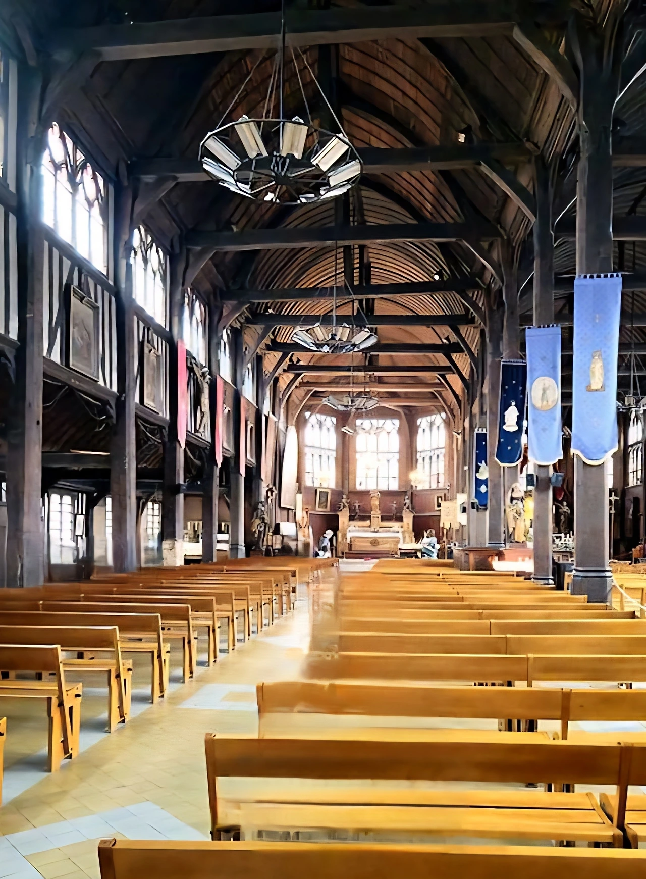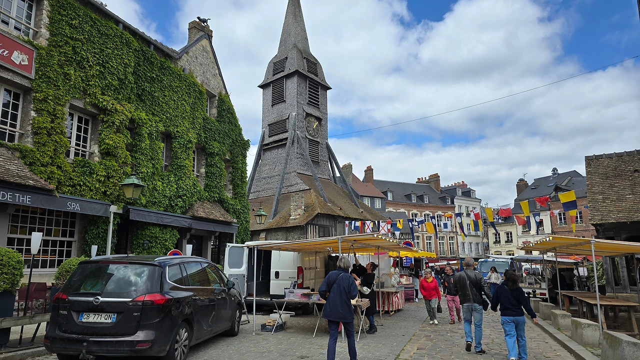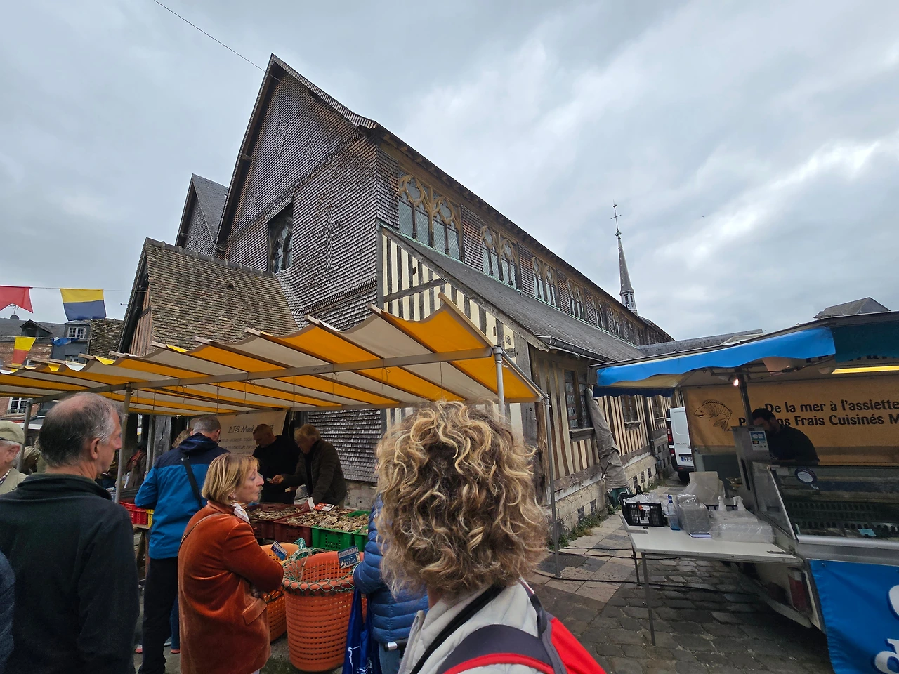 장터 안쪽으론 장터 분위기와는 다소 어울리지 않게 종탑이 있다. 생트 카트린 성당 (Église Sainte-Catherine)의 종탑이다. 맞은편으로 성당 건물이 있다. 15세기에 나무로 지어졌다고 하는 성당은 현재 프랑스에서 가장 오래된 목조 성당이라고 한다. 성당 내부, 특히 천장 부분이 마치 선박을 뒤집어 놓은 듯한 모양의 구조를 하고 있다. 이는 선박 건조 당시 배를 만드는 장인들의 참석 영향이라고 한다.