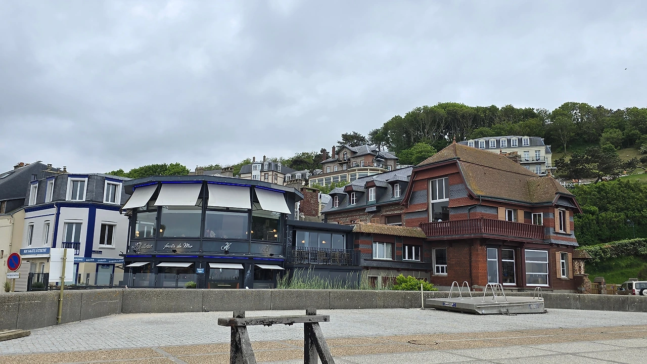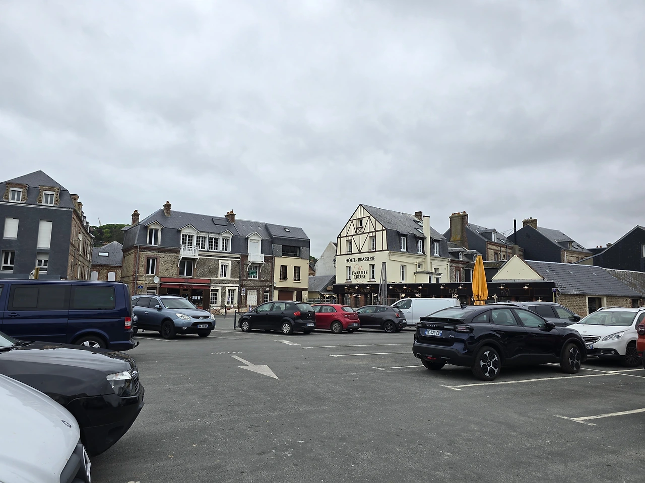 (에트르타 주차장과 주변의 카페)