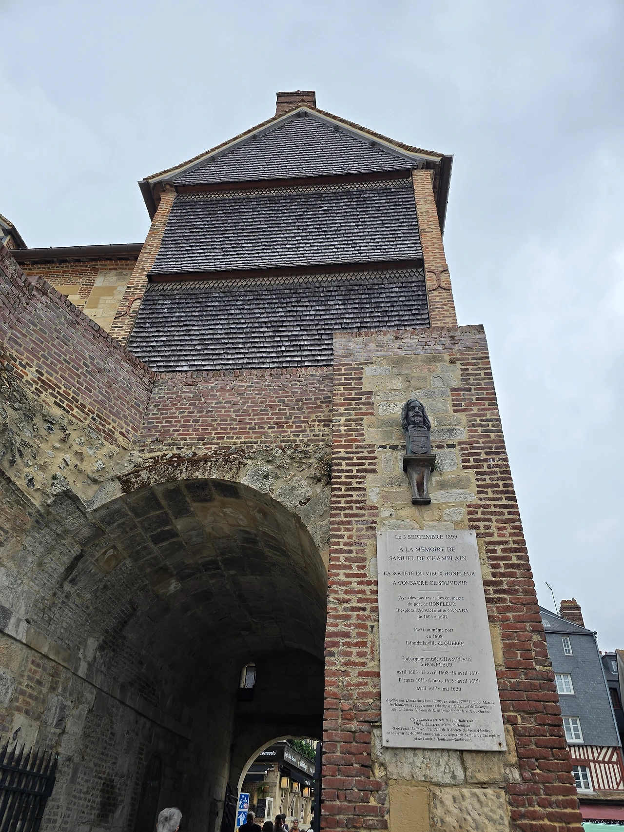 골목을 빠져나오니 건물이 하나 보인다. 리외트낭스 (Lieutenance) 건물로 구항구 도개교를 관리하던 사무실이란다. 옆의 출입 통로가 아치형으로 멋스러운데, 오른쪽 벽면에 인물이 조각되어 있다. 프랑스 탐험가 사뮈엘 드 샹플랭(Samuel de Champlain) 이란다. 1604년에 앙리 4세의 왕명을 받고 캐나다를 탐험해 지금의 퀘벡시를 발견, 건설한 인물이다.