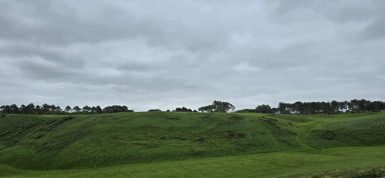 언덕 앞으로 펼쳐지는 드센 바다의 광풍과는 달리 고개 돌려 내륙의 뭍을 보면 저 멀리에는 소들이 풀을 뜯고 있는 완만한 초록의 고원지대가 너무나도 평온한 풍경으로 시침 떼고 있다. 울고 웃고 가 한 자리에서 모두 관찰된다. 빠르게 여기저기 풍경을 훑어보고 내려온다.