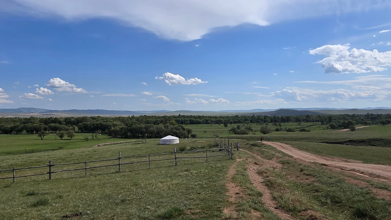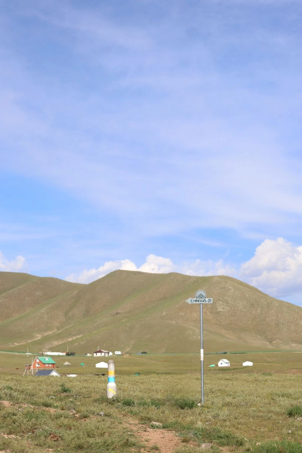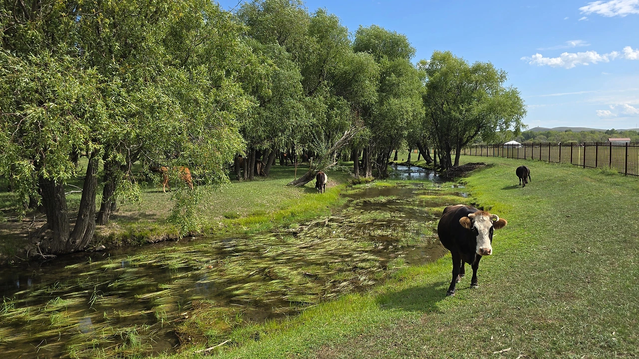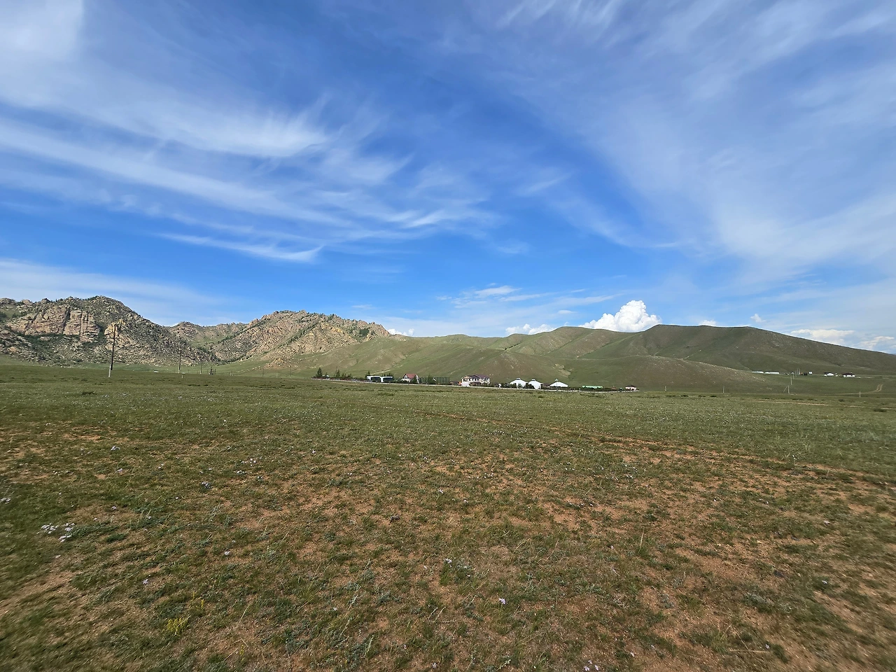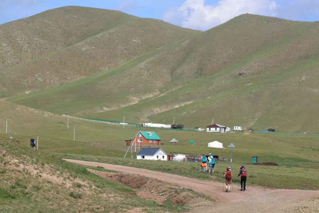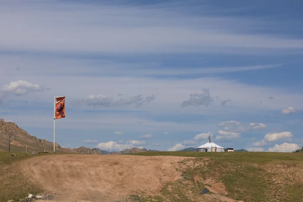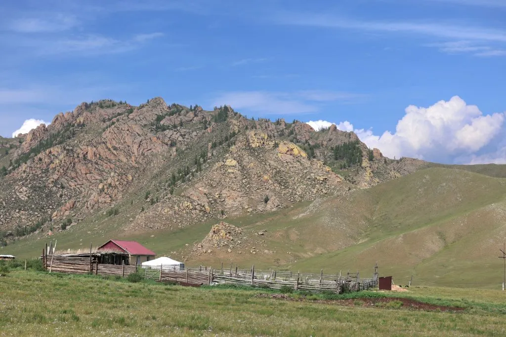 완만한 길 옆으로 목조 주택이 있고 언덕 위로 뽀얀 게르도 보인다. 차창으로 멀리서만 보던 게르를 드디어 가까이서 본다. 어릴 적 할머니 집에서 보았던 초가집을 보는 기분이다. 너무 푸근하다. 머리에 수건을 두른 우리 할매라도 나올 거 같다. 등에 지게를 진 할배가 나올 것 같기도 하다. 둥근 초가지붕을 닮은 둥글둥글한 게르..