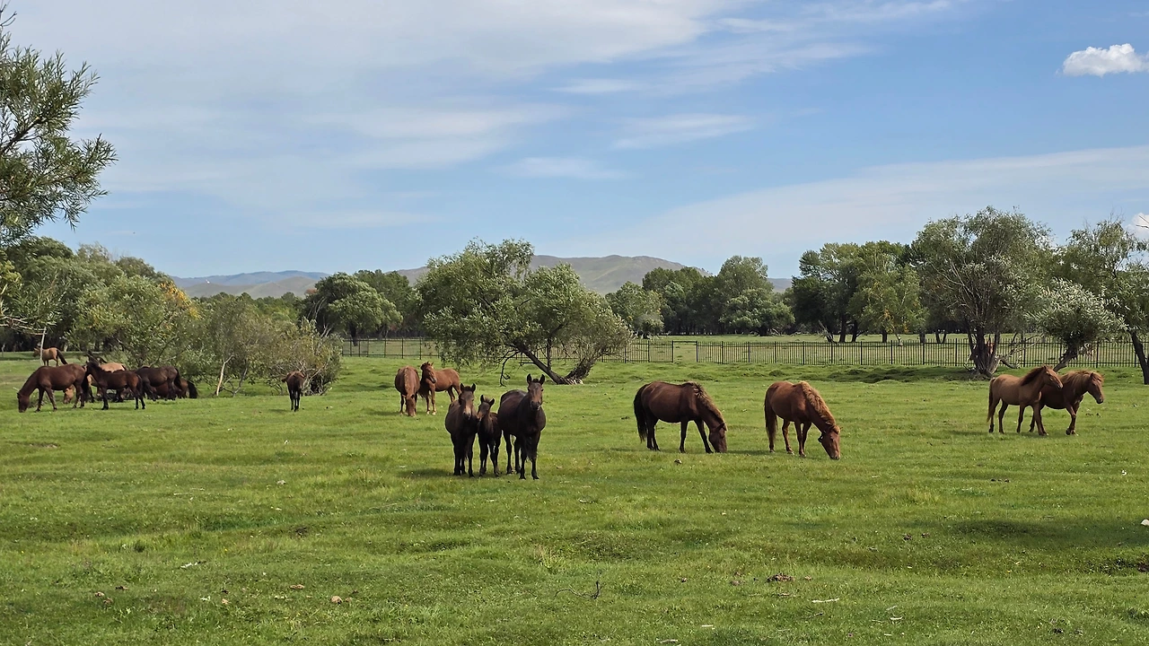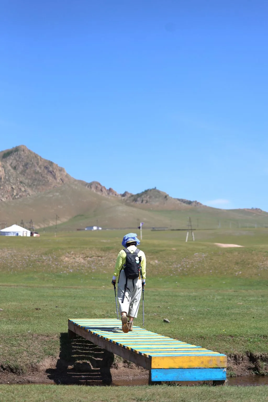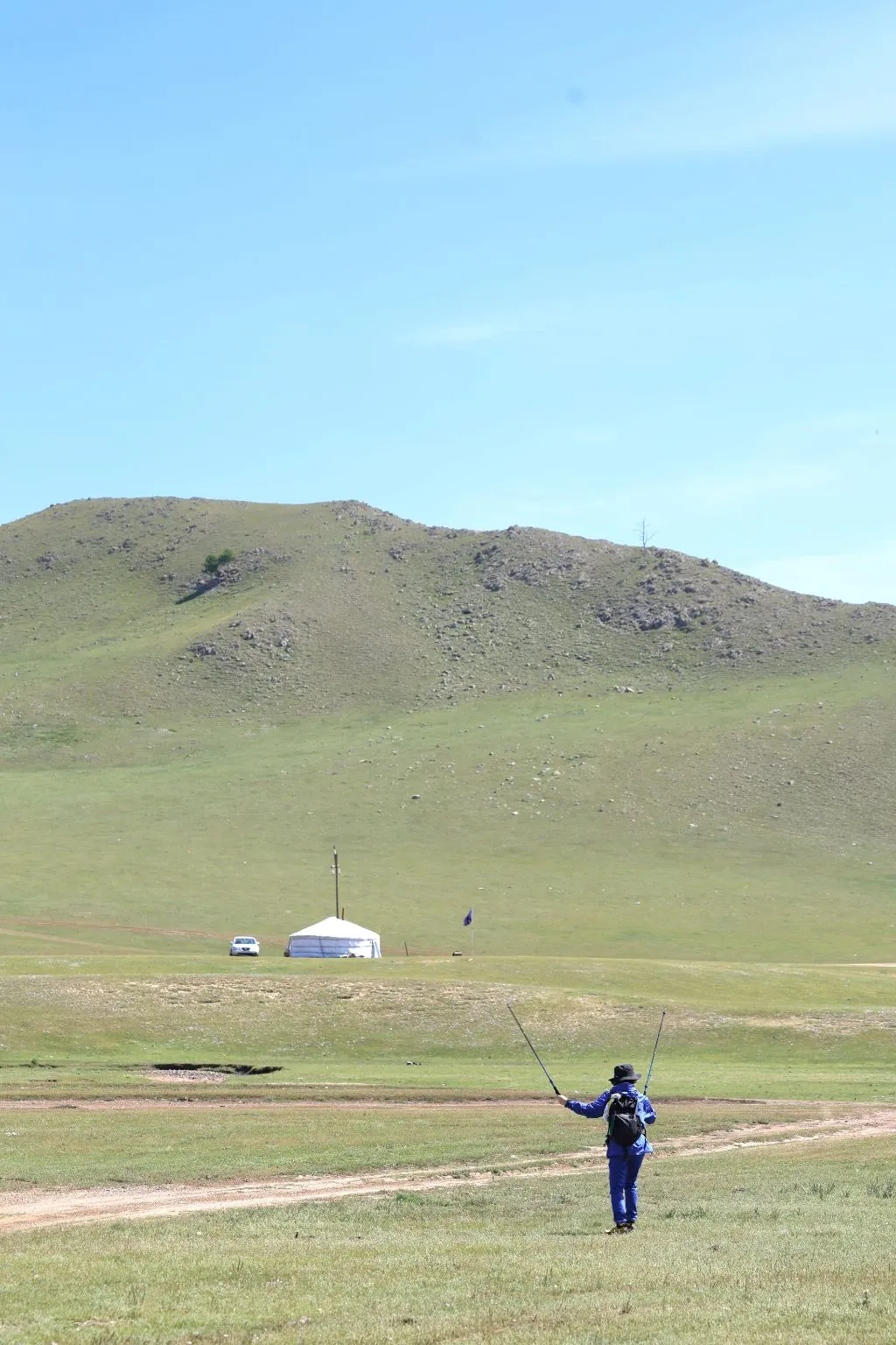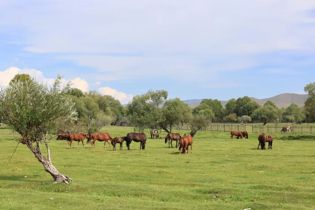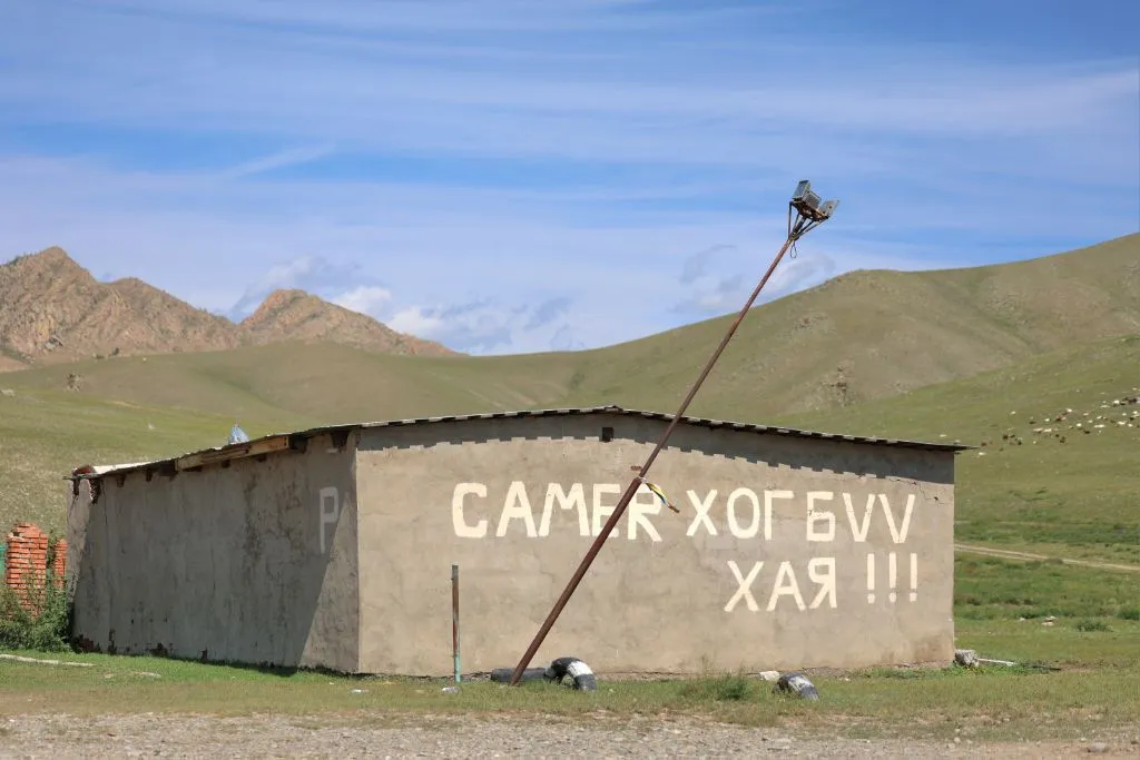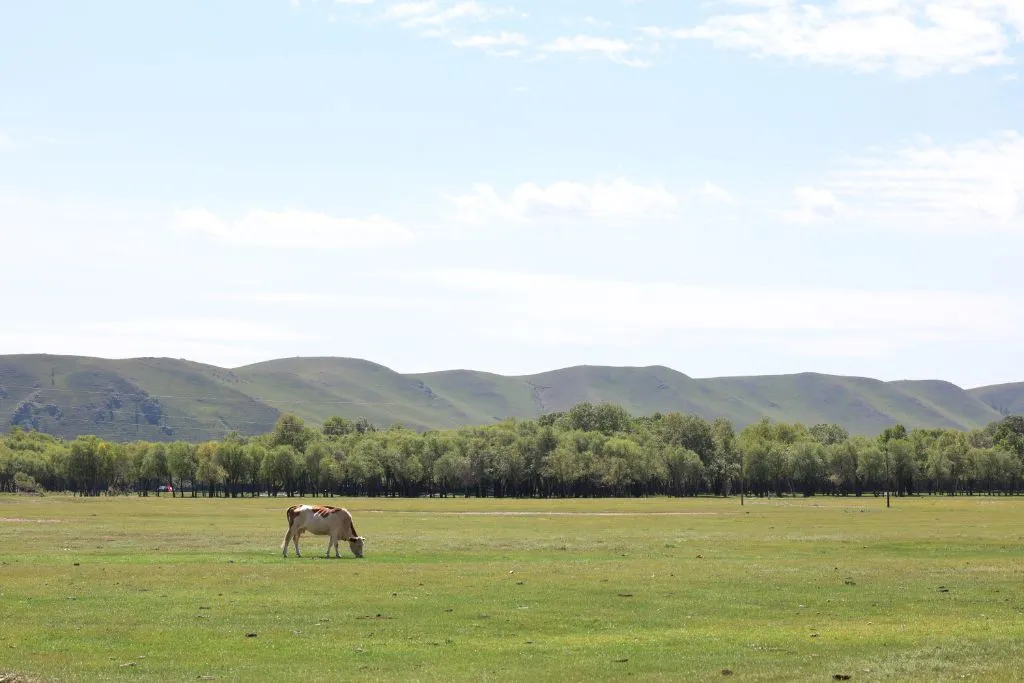 완만한 길 옆으로 목조 주택이 있고 언덕 위로 뽀얀 게르도 보인다. 차창으로 멀리서만 보던 게르를 드디어 가까이서 본다. 어릴 적 할머니 집에서 보았던 초가집을 보는 기분이다. 너무 푸근하다. 머리에 수건을 두른 우리 할매라도 나올 거 같다. 등에 지게를 진 할배가 나올 것 같기도 하다. 둥근 초가지붕을 닮은 둥글둥글한 게르..