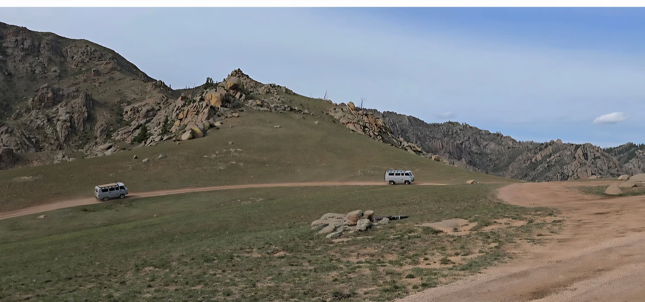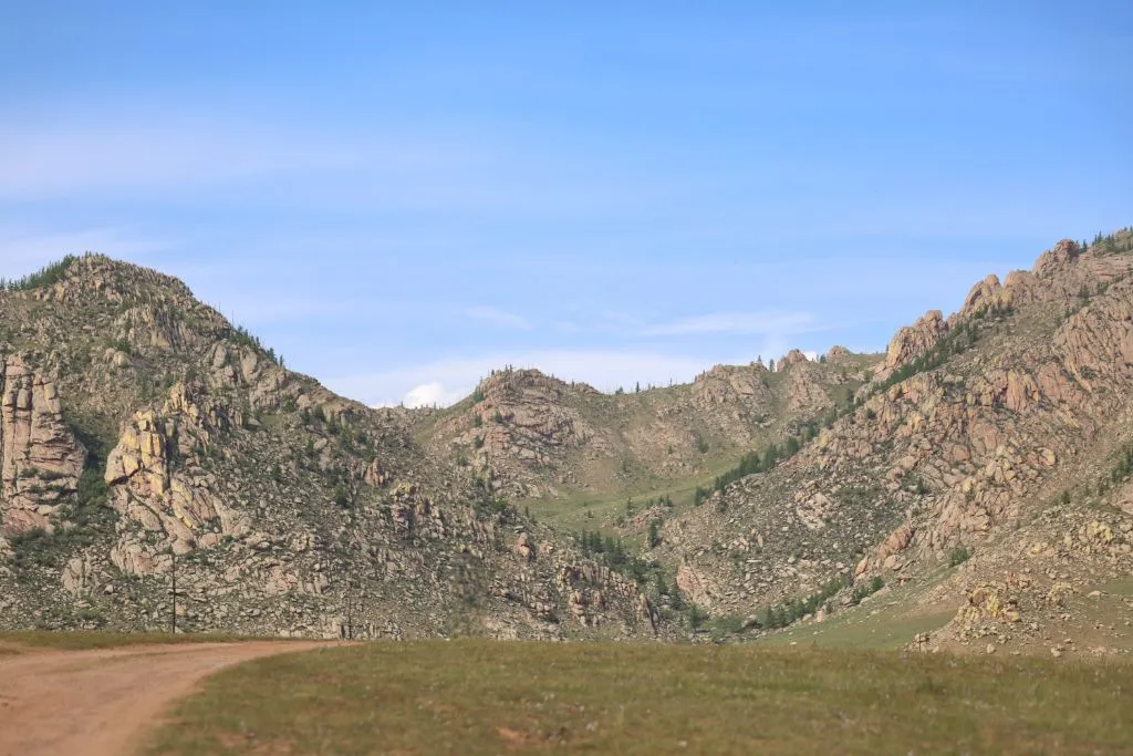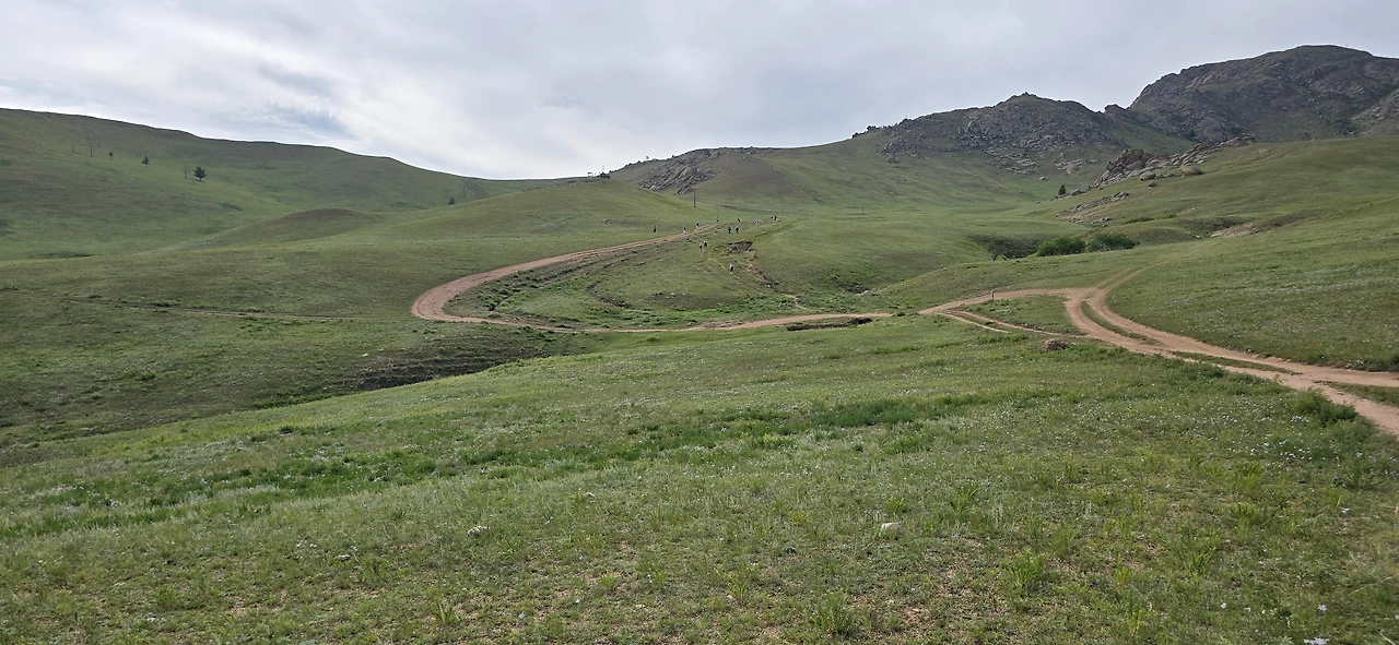 어워에서 테를지 국립공원 트래킹 코스로 가고 있는 중이다. 융단을 덮어 놓은 듯 보드라인 풀을 얹고 있는 초원과 산지는 계속 이어진다.