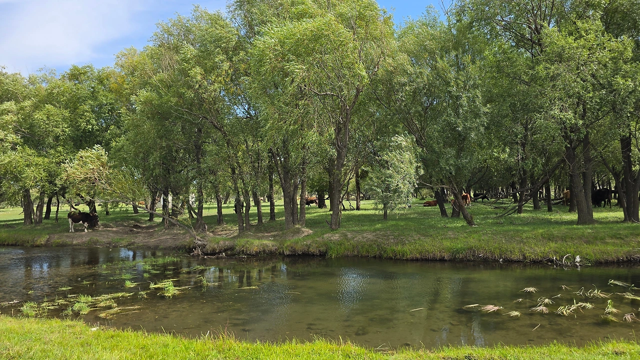 드문드문 표시되어 있는 올레길 표식을 지나는 사이 망망대해처럼 넓게 느껴졌던 초원은 점점 뒤로 밀려나고 멀게 느껴지던 왼편의 산은 서서히 다가온다. 말 공연장이란 곳을 지나고 자그마한 개울도 지나니 푸른 숲을 거느린 강이 나온다. 툴강이다. 넓은 초원 끝자락에 느닷없이 나타난 강은 넓은 강폭에 가득 물을 싣고 흐르고 있다. 물은 햇빛을 받아 보석처럼 반짝이며 너무나 투명하고, 강 너머 숲으론 말들이 풀을 뜯고 있다. 목가적이다라는 표현은 이런 장면을 위해 있는 것일 게다. 풀밭뿐이라며 툴툴대던 아지매가 강을 배경으로 멋진 포즈 취하기에 여념 없다. 조금 더 나아가니 소 떼들도 있고, 그 옆 울타리 너머에는 말 무리도 있다. 강 건너 이쪽 편 초원에도 말들이 풀을 뜯고 있다. 가만.. 말들이 풀을 먹고 있다고 해야 하나... 우리가 자기들의 식사 장면을 두고 풀을 뜯고 있다고 하면 기분 상해하려나... 지극히 인간중심적이야라고..