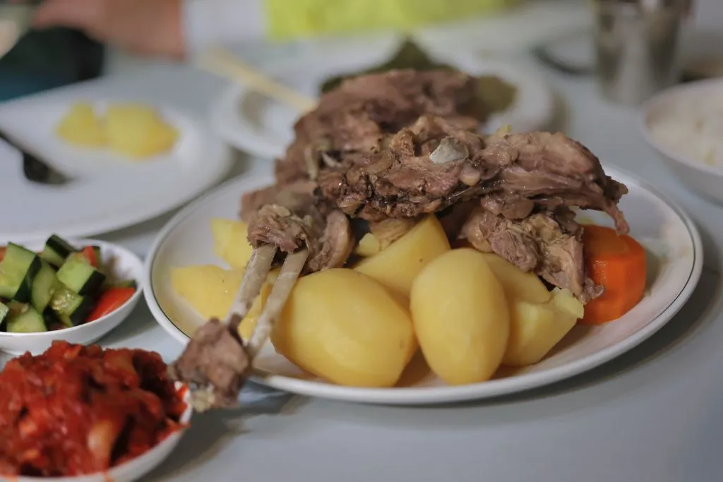이어 옆자리에 마련된 게르 안에서 몽골 전통 유목민의 음식인 허르헉을 먹었다. 양고기를 감자, 당근, 양파와 함께 넣어 푹 익힌 음식으로 담백하고 양고기도 부드러워 먹을 만했다.