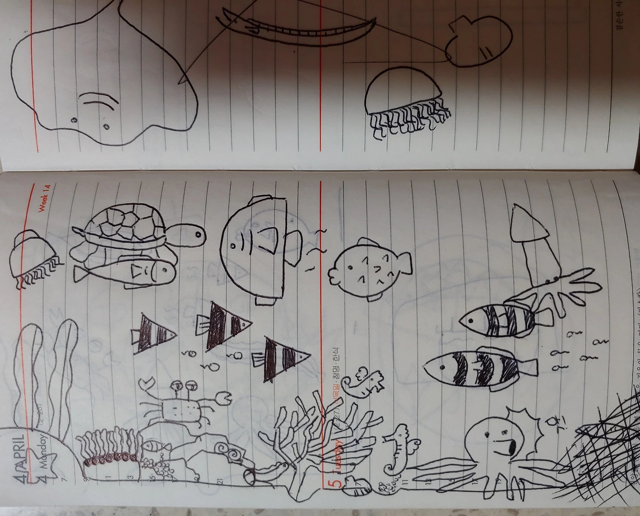 초등학교 4년/ 당시 좋아했던 임형주 콘서트장서 휴식 시간에 엄마 수첩에 그린 그림