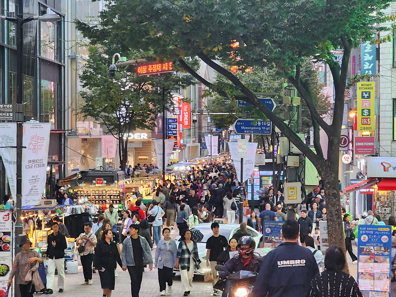 코로나19 엔데믹(풍토병화)으로 사회적 거리두기와 마스크 착용 의무가 사라진 후 명동성당 일대 거리는 상인과 관광객으로 붐볐다. 코로나19 팬데믹(세계적 대유행) 당시 주말에도 텅텅 비었던 거리는 서울서 가장 활기찬 거리가 됐다.