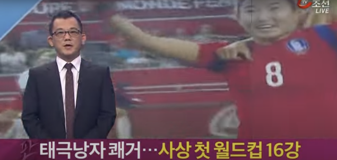 2015년 캐나다 여자월드컵 스페인전 승리 후 종편채널 TV조선이 뉴스를 통해 여자대표팀 소식을 보도한 장면. [사진출처=유튜브 영상 캡처]
