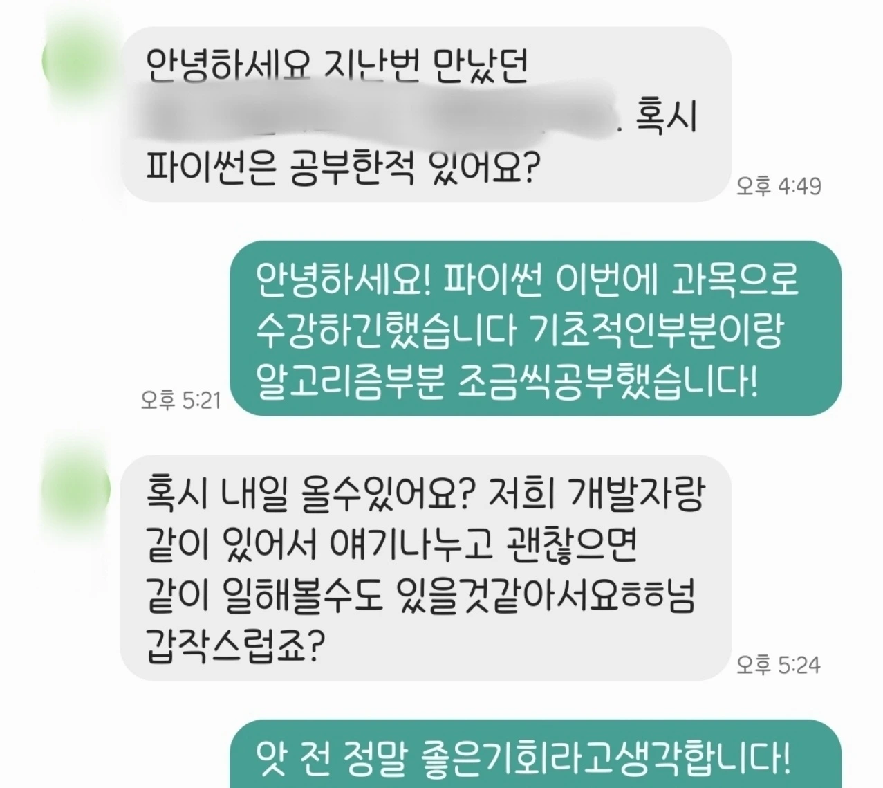 겨울방학을 맞이했을 때, 창업과 개발을 어디서부터 공부해야 할지 몰라 막막했다. 나름 혼자서 유튜브도 보고 이것저것 해보던 참에 갑자기 앞서 쪽지를 주셨던 대표님으로부터 연락이 왔다.