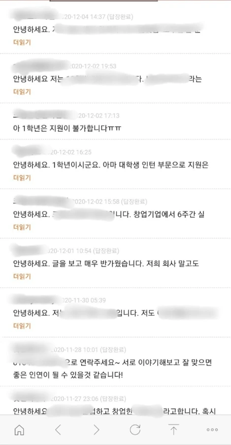 겨울방학이 되었다. 아직 막막했지만 그럼에도 시간을 헛되이 보내기 싫었다. 선배들에게 조언을 얻었던 것처럼 적극적으로 기회를 찾아다닌다면 결국 기회를 잡을 수 있을 것 같다는 믿음이 있었다. 그래서 학교 커뮤니티 내 창업 게시판에 글을 올렸다. '개발자가 되고 싶고 창업에 관심이 많으며 향후 IT분야로 창업하고 싶다, 아직 할 수 있는 것은 없지만 보고 배우는 것만으로도 많은 도움이 될 것 같으니 꼭 연락 달라' 이런 내용이었다.