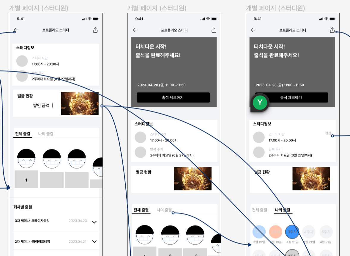 나의 경우엔 아래와 같이 와이어프레임 단계에서 특히 많이 사용했다. 어떤 플로우로 작동하는지 개발자와 효과적으로 공유하기 위해 이 플러그인을 사용했다.