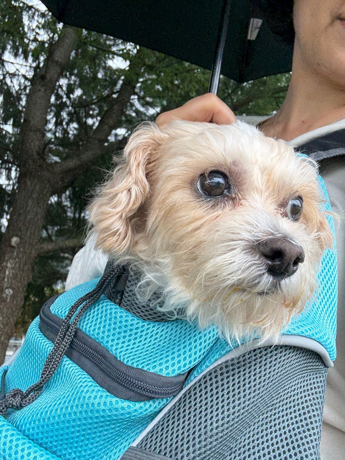 따뜻한 타월로 몸을 닦아 주고 앞으로 매는 가방에 넣었다.