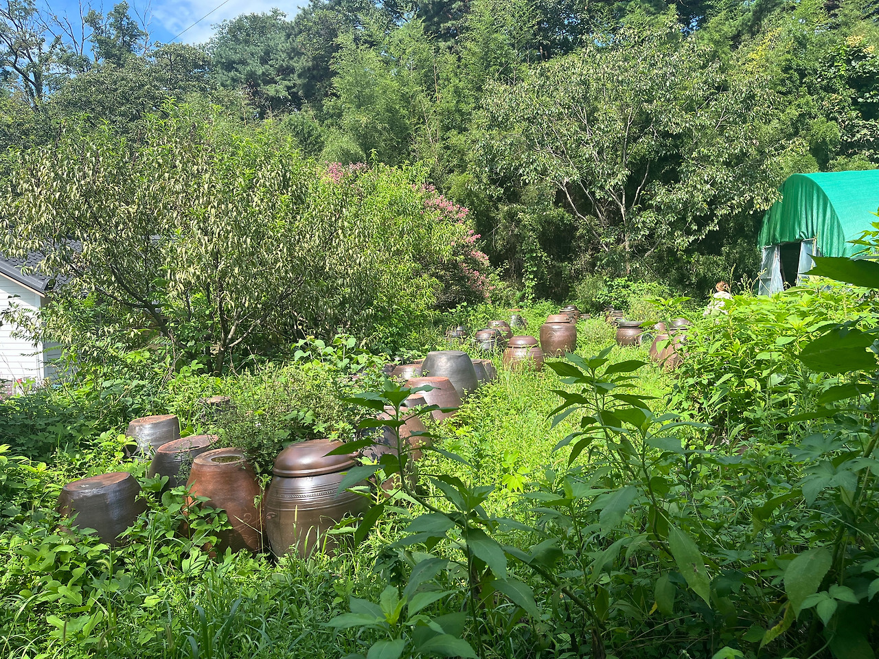 서풍골은 논산에서도 산 아래에 있다. 산으로 올라가는 길목에서 옆으로 빠져서 차 한 대씩만 다닐 수 있는 좁은 길로 들어서니 산답게 우거진 식생 사이에 텃밭과 소담한 한옥, 그리고 즐비한 장독과 장 작업하는 부엌이 있는 농원이 나왔다.