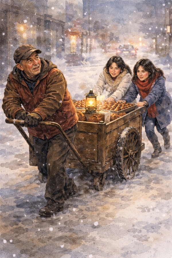 오늘은 군밤과 군고구마가 빨리 팔려야 할 텐데, 괜히 마음이 쓰였다.