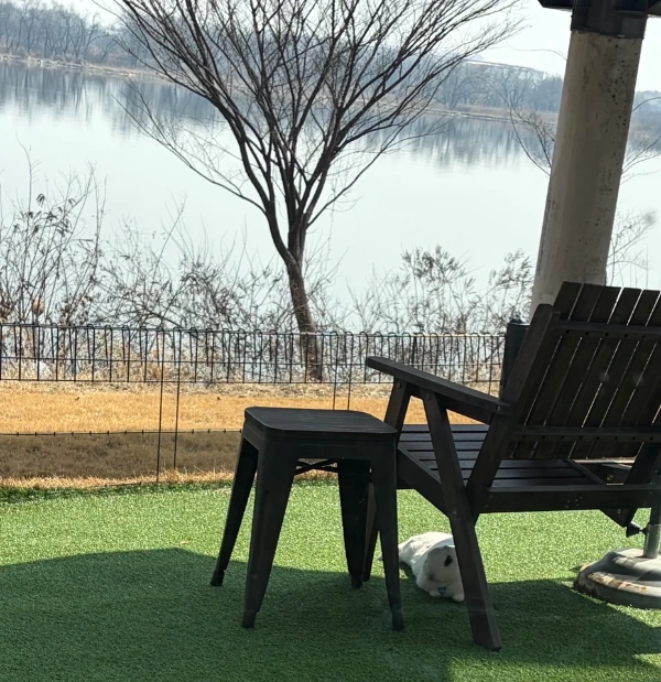 커피숍 마당에서 뛰노는 토끼를 보았다.