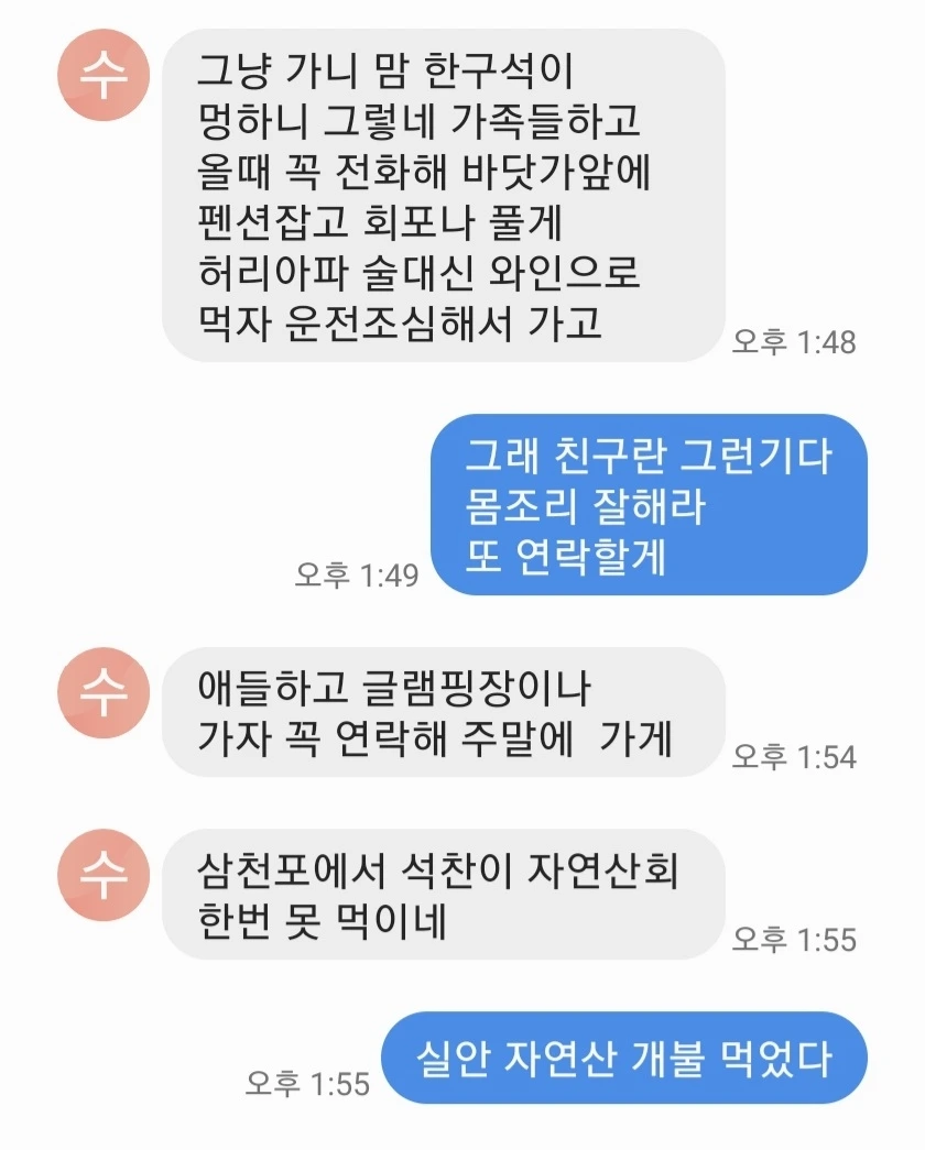 몸에 탈이 난 중학교 친구 녀석이었다.