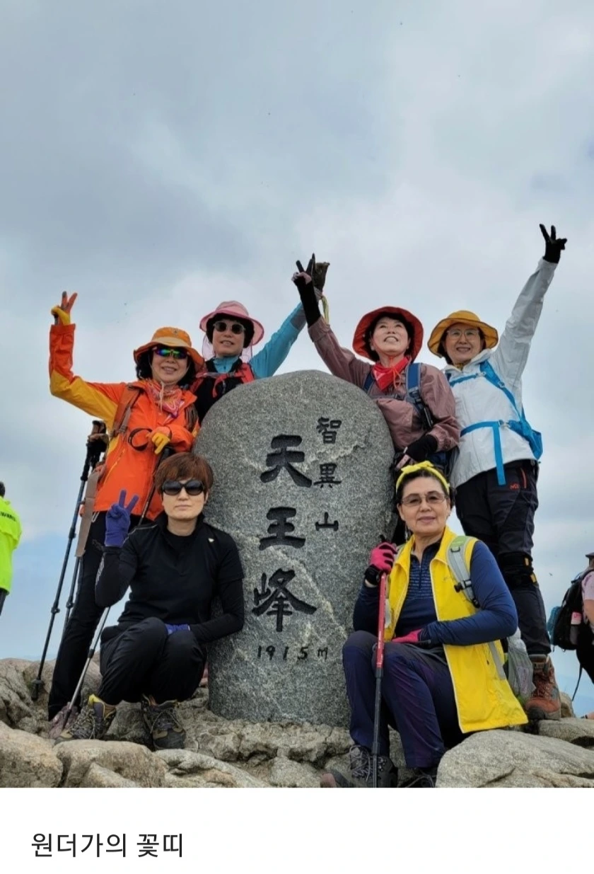 72세 최고 젊은이와 60세 애기들의 지리산 도전기 팔다리는 파김치처럼 허물어져도 정신만큼은 초롱 거리고 나이는 세월의 성상일 뿐 삶의 걸림돌이 아닌 란 걸 깨우치고 나도 한다는 자신감 성취감은 지리의 세석 평전에 깔고 또 깔고 간다 지리산은 오르막이 있으며 오르막으로 끝나고 내리막이 있으며 내리막으로 끝난다 세상 이치와는 사뭇 다르다네. ㅋ