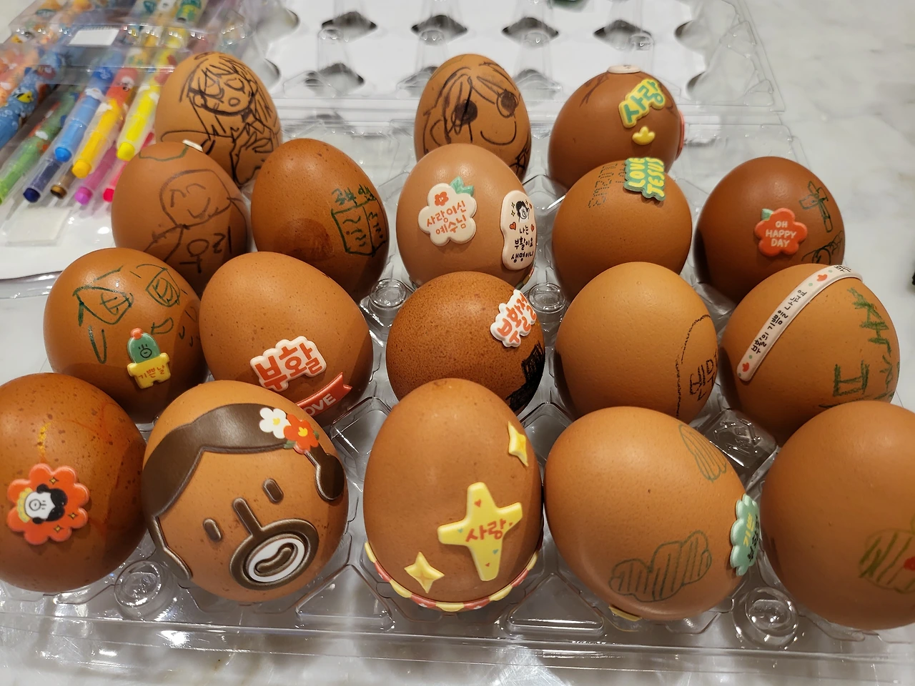 정성스럽게 만든 부활절 달걀을 놓고