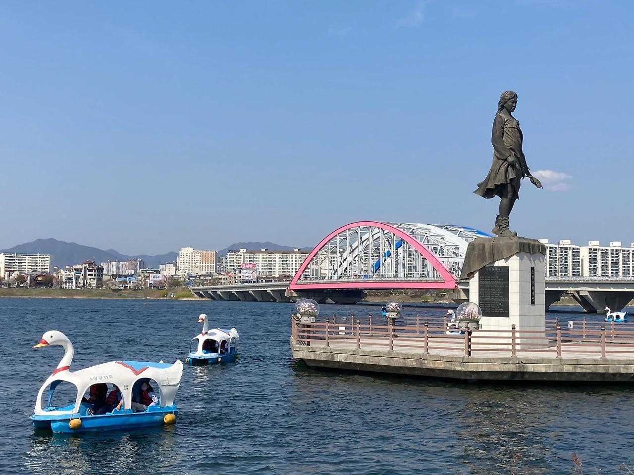 기념사진을 찍고 오리배도 탔다.