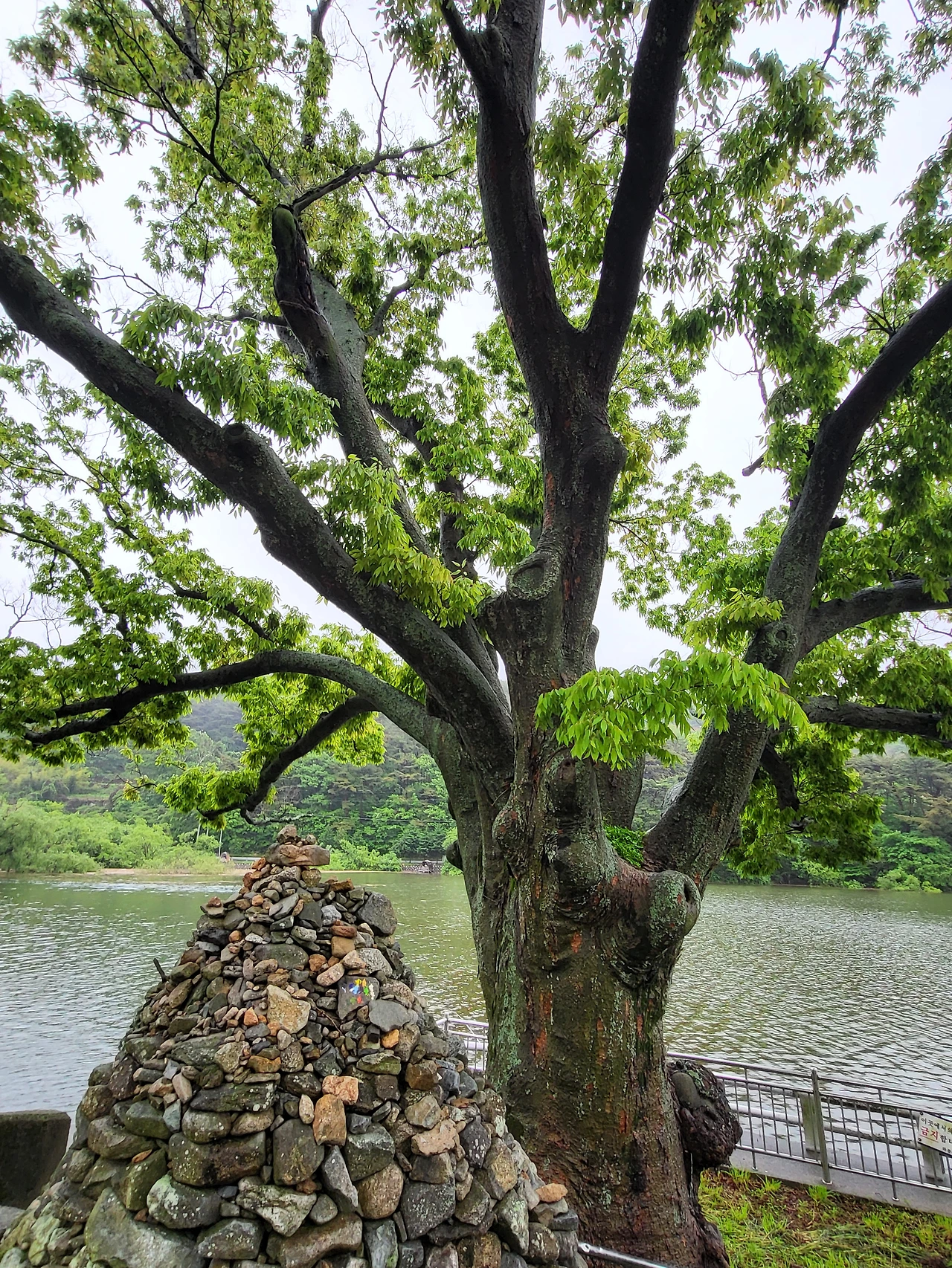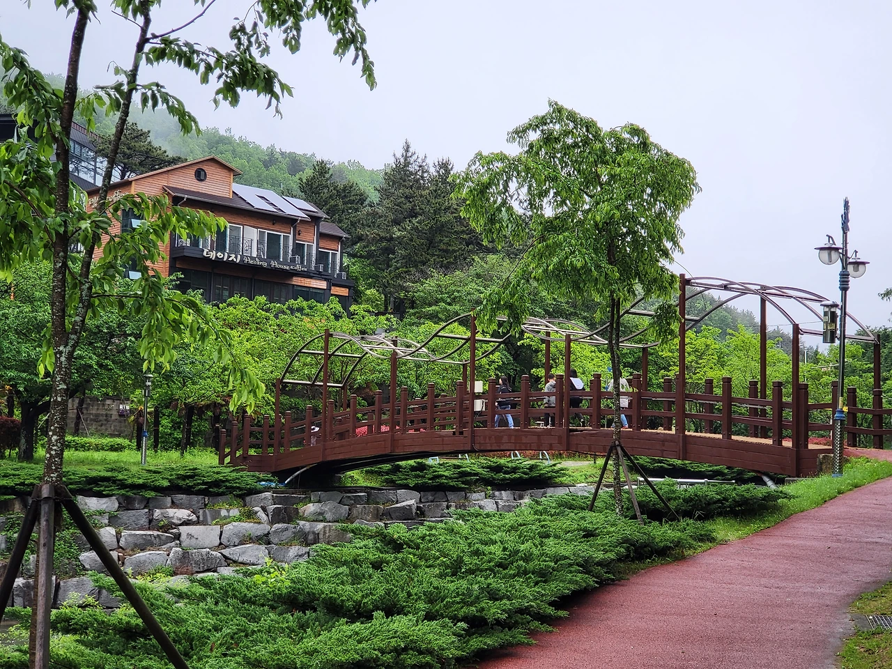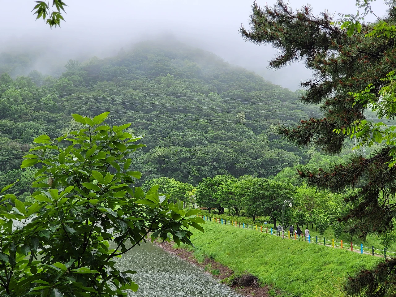 비가 그쳐서 함께 걸었다.