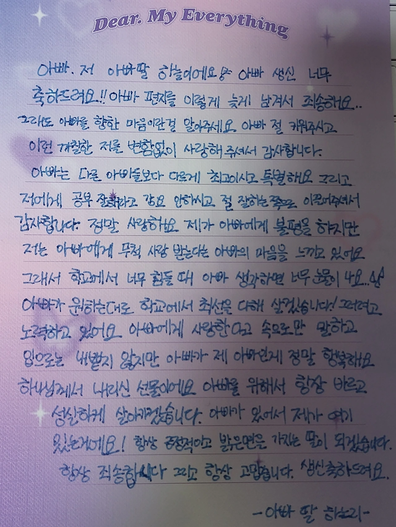 아빠 최고라며 꾹꾹 눌러쓴 편지가 있고