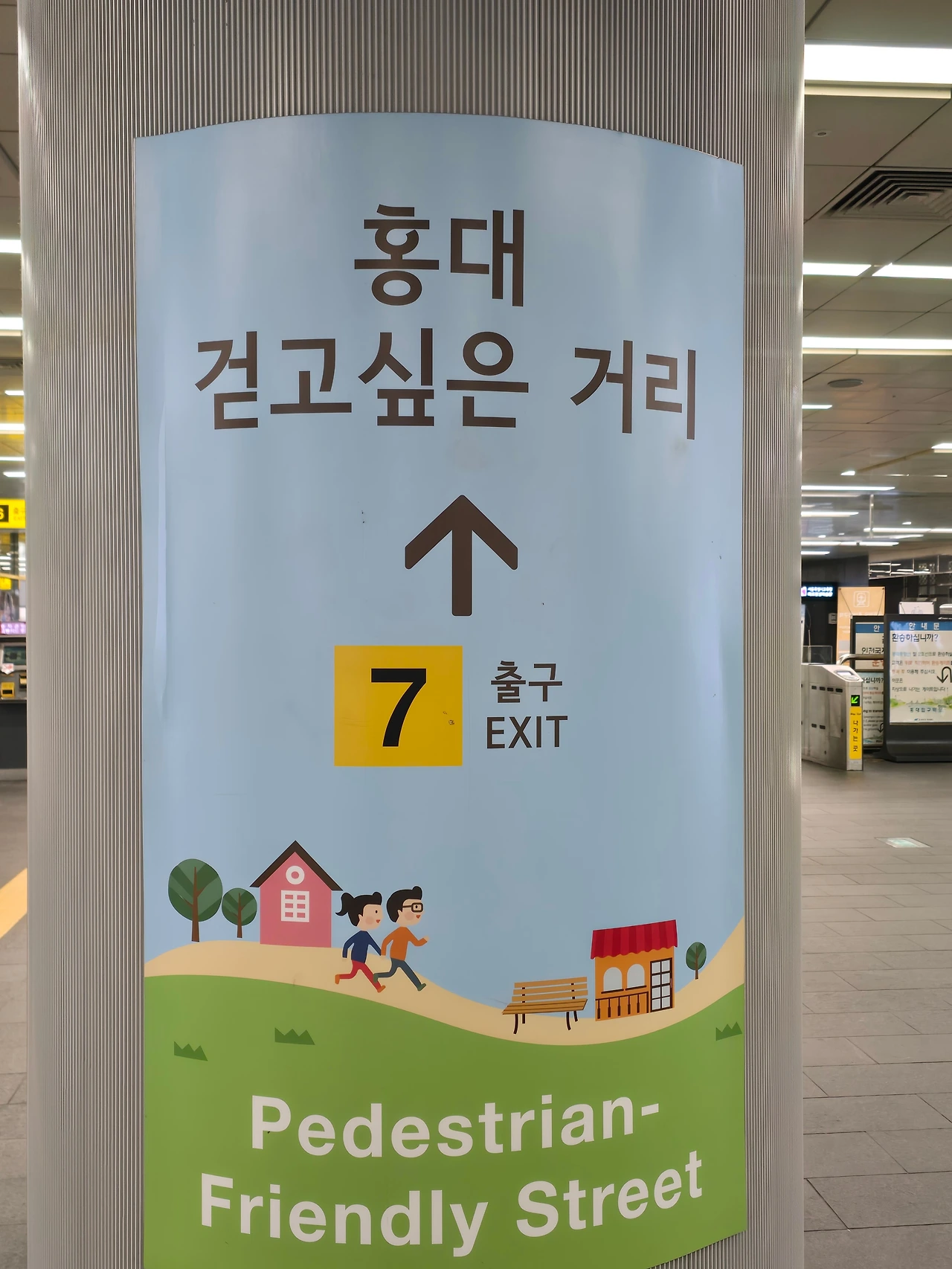 홍대입구역 벤치에 앉아있었다.