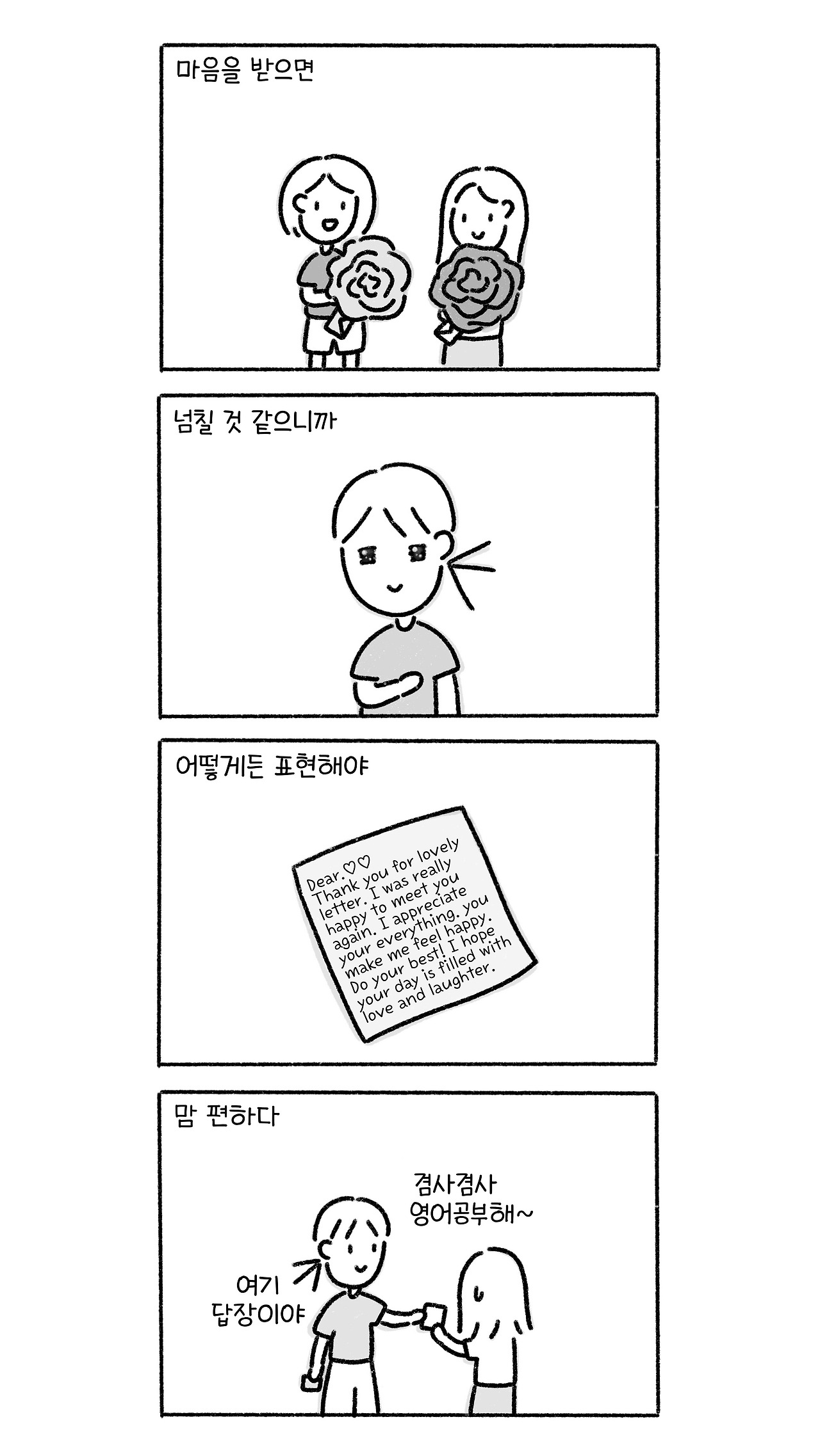 “그때 편지 고마워서 써봤어. 집 가서 해석해봐.”