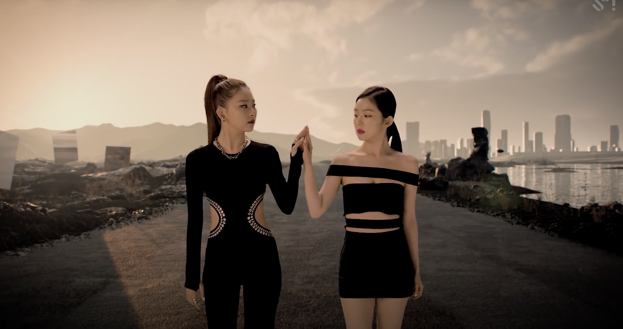 (타이틀곡인 '몬스터'에서도 아이린과 슬기는 대비된다)