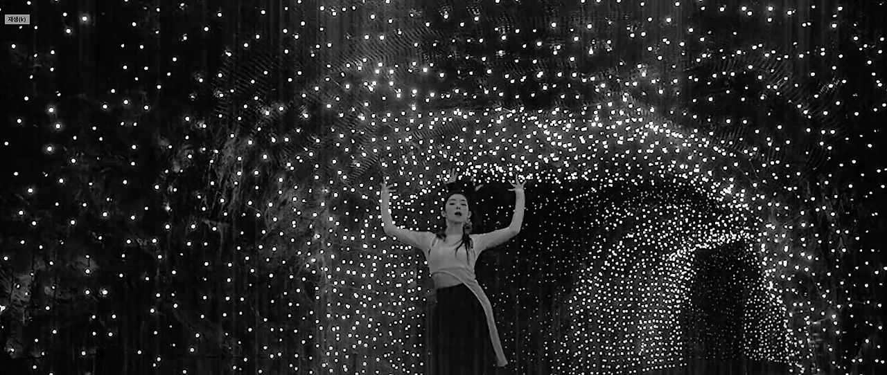 첫 번째 후렴. 캡처를 거지같이 했지만 손전등 같은 둥근 조명이 계속해서 둘을 비춘다. 마치 흑백영화 필름이 돌아가듯이...