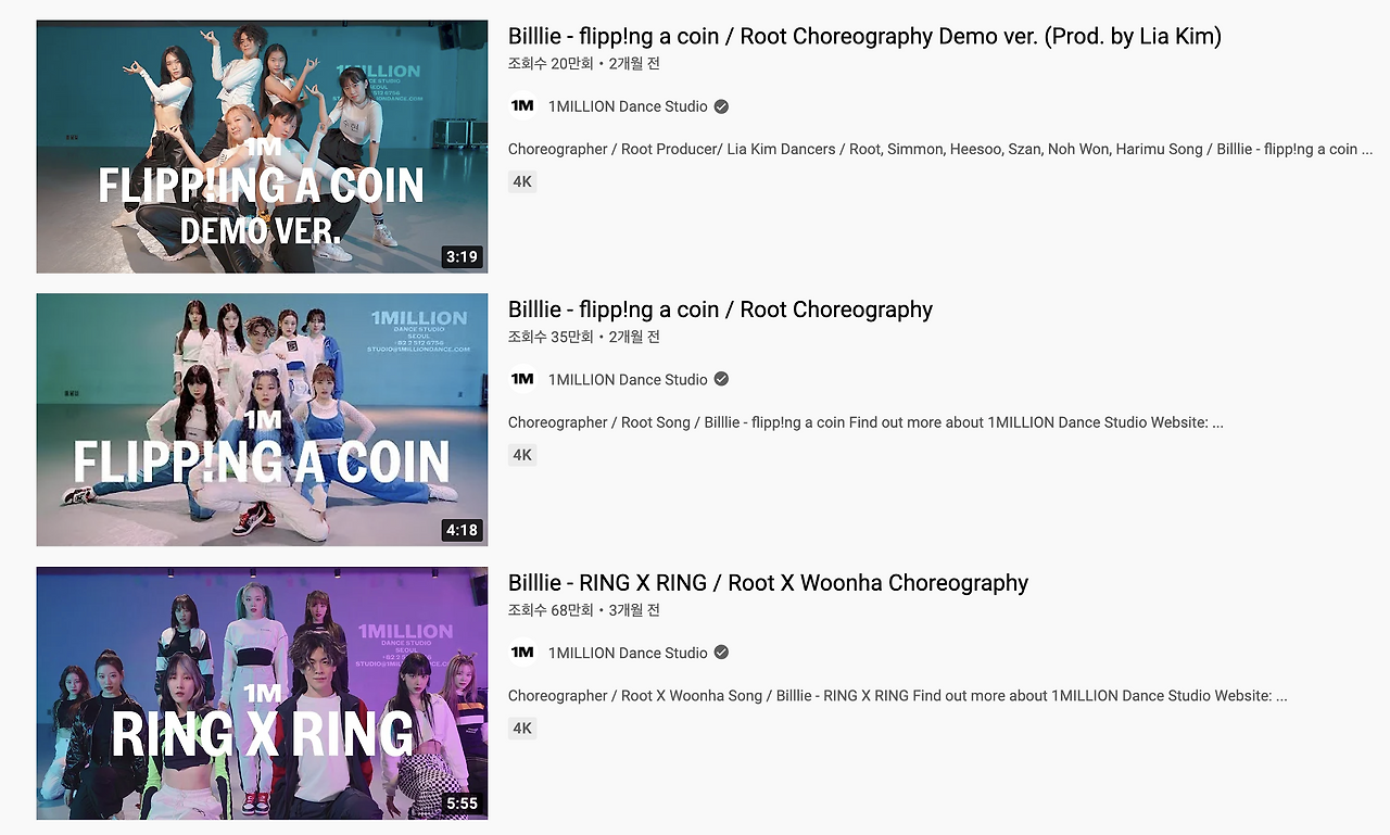 퍼포먼스 얘기가 나왔으니 잠깐 따로 이야기를 하자면, 빌리는 데뷔 전부터 1MILLION(원밀리언) 스튜디오와의 협력을 통해 퍼포먼스를 만들었다고 홍보를 크게 했습니다. 그런데 사실, 'RING X RING' 안무는 전체적으로 제 취향은 아니었어요. 원밀리언과의 협업이 엄청난 감흥이 있지도 않았구요. 왜냐면 국내외 최고의 댄서들에게 시안을 받는 아이돌이 그리 귀한 시대는 아니잖아요. 그것도 그렇고 저는 'RING X RING'을 음원으로 먼저 듣고 좀 더 시원시원한 안무를 기대했습니다. 특히나 눈부신 느낌의 후렴부 안무가 어떨까 엄청나게 궁금한 상태로 퍼포먼스를 봤는데, 상상에 비해 안무 크기가 작은 것도 있었고요. 아이돌은 춤에만 집중할 수 있는 댄서보다 신경 써야 할 것이 많아 데모만큼 디테일을 살리기는 어렵습니다. 그래서 저는 디테일에서 춤의 맛이 좌우되는 안무보다는 동작이 좀 큰 안무를 선호해요. 수록곡이자 음악방송 커플곡이었던 'flipp!ng a coin'도 'RING X RING'과 같은 이유로 살짝 아쉬웠어요. 무튼 이건 취향!