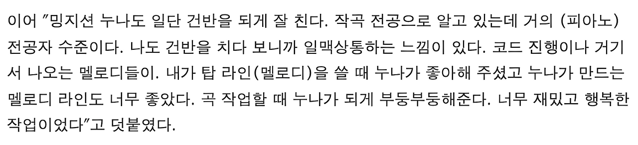 밍지션은 참 듣기 좋은 탑라인을 씁니다. '듣기 좋은' 것은 너무나 중요합니다. 가끔은 모든 것을 이기기도 합니다. 음악이 너무 '듣기 좋아서' 다른 모든 것이 용서될 때도, 다 좋지만 '듣기 좋지 않아서' 결국 용서하지 못할 때도 있습니다. 듣기 좋은 것이란 무엇인가! '맛있다'같은 것이죠. 들으면 다 압니다. 설명하지 않아도 압니다. 뭐 소리의 밸런스가, 코드의 진행이... 설명을 할 수는 있겠지만 '감'이라고 하는 본능의 영역이 먼저 반응하는 구석이 분명 있습니다. 대체로 따듯하고 편안한 느낌을 주는, 듣기 좋은 밍지션의 곡들을 한 번 쭉 들어보시기를 추천드립니다. 멜론 홍보는 아니지만, 요즘에는 작사/작곡진의 참여곡을 모아볼 수 있는 기능이 있어서 잘 사용하고 있습니다. '밍지션'을 검색하면 참여곡이 쭉 뜹니다. 아 맞다 그럴 것 까지도 없고... 유튜브에 '밍지션' 치면 플레이리스트 나옵니다.