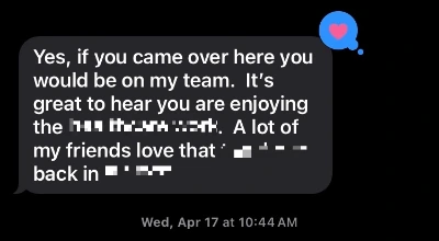 최근에는 Nㅇㅇ이 회사를 옮기게 되었는데, 그 회사를 인수할지 말지 의사결정 중이라고 들었다. 만일 그 일이 성사된다면 ‘데려올 사람 리스트 중 1순위’로 나를 염두하고 있다고도 전해 들었다. 실제로 그 일이 있기 한참 전인 2024년 봄에 그로부터 비슷한 뉘앙스의 대화를 했었다. (당시는 옮긴 회사의 임원이었다.)