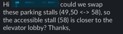 또한 City By-law에서 정해놓은 요건은 아니지만, Accessible Stall 사용자 입장에서 주차공간은 엘리베이터 로비와 가까울수록 좋다. 프로젝트 진행 중 최초에 주차장을 설계한 사람이 이 점을 간과*했다면, IFC**가 배포되기 전까지 수정 가능한 영역이며, 설령 시공 단계에 들어갔다 하더라도, 전체 주차장 수에 변동이 없다면 현장과 소통을 통해 충분히 조정을 할 수 있다.