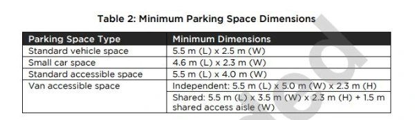 참고로, City of Surrey의 경우 프로젝트의 맨 마지막에 위치하는 주차 공간은 벽으로부터 2'-0"만큼 떨어져야 하는 조항도 있다.