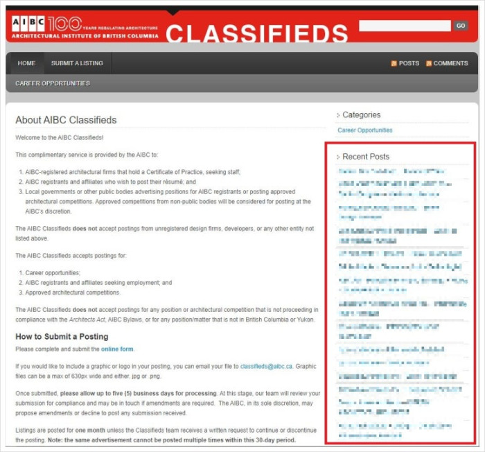 두 번째 방법은 주 단위 건축협회의 구인공고 란을 이용하는 것이다.