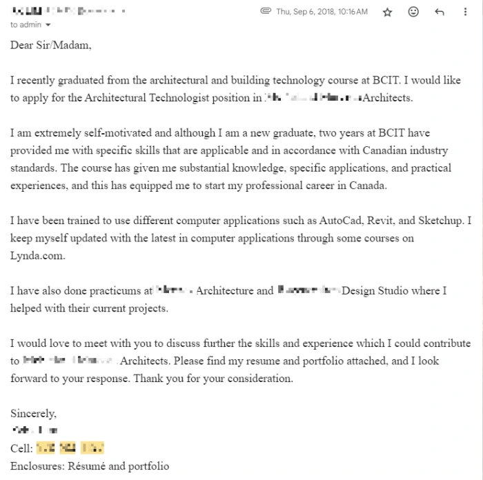 위 두 방법을 통해 지원할 회사를 찾았다면, 인사 담당자의 이름을 모르기 때문에 아래처럼 Dear Sir/Madam이나 To Whom it may concern로 이메일을 시작하며 자기소개와 역량, 포부 등을 간략하게 밝힌다.