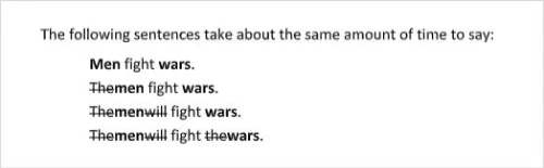 그리고 문장 내 중요한 단어들은 소리 낼 때 한 호흡씩 규칙적인 시간을 준다. 예를 들어, Men과 Wars는 중심 단어로, 원어민은 말할 때 규칙적으로 한 호흡씩 시간을 낸다.